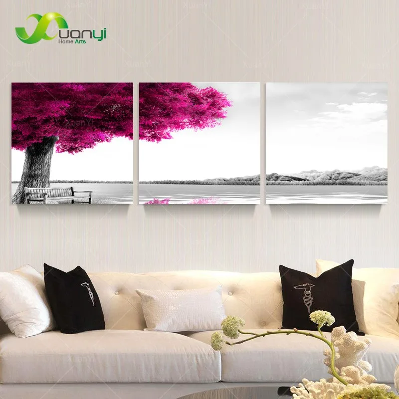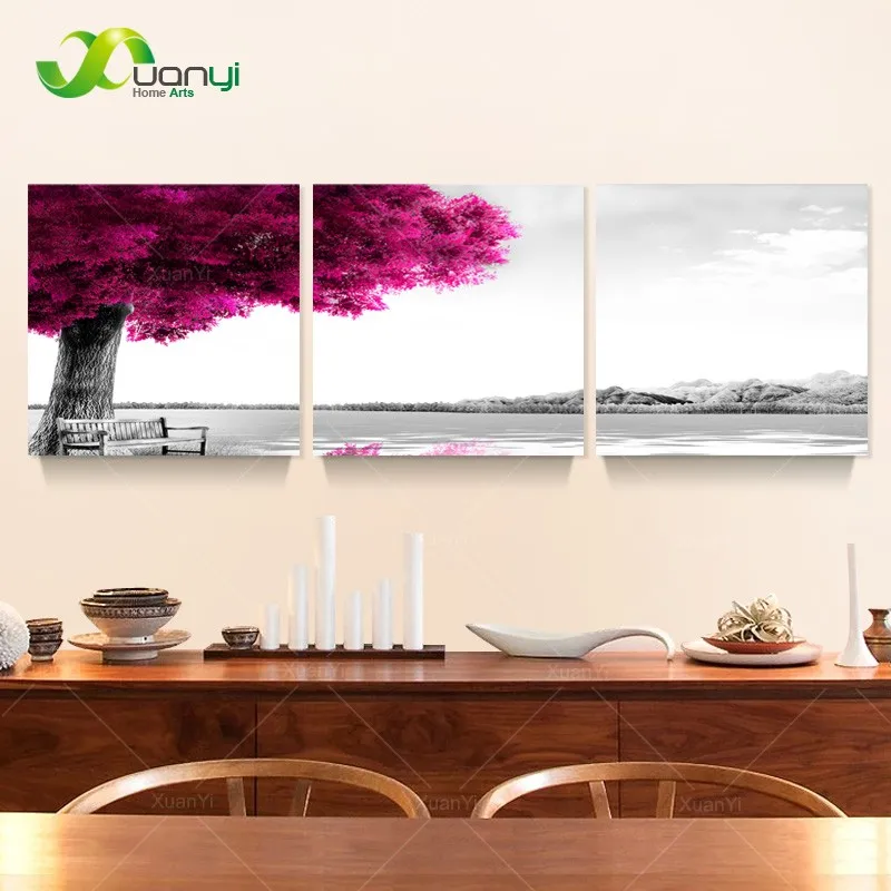 3 Панели красное дерево пейзаж холст картина плакат и печать Куадрос Декор модульное настенное искусство картина для гостиной без рамки