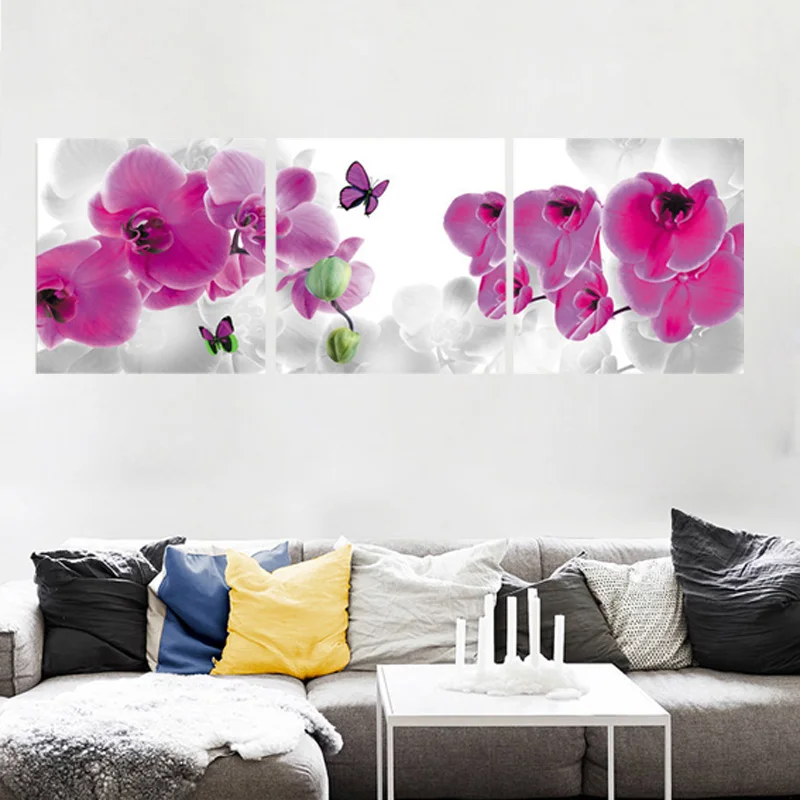 3 Панели Современная бабочка цветок картины картинки Decoracion Холст Искусство Настенный декор для гостиной печать без рамы PR158