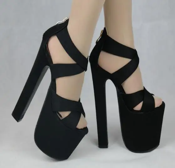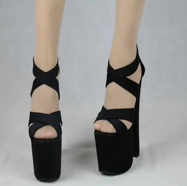 Женские босоножки на очень высоком толстом каблуке 17 см, размеры 34-38