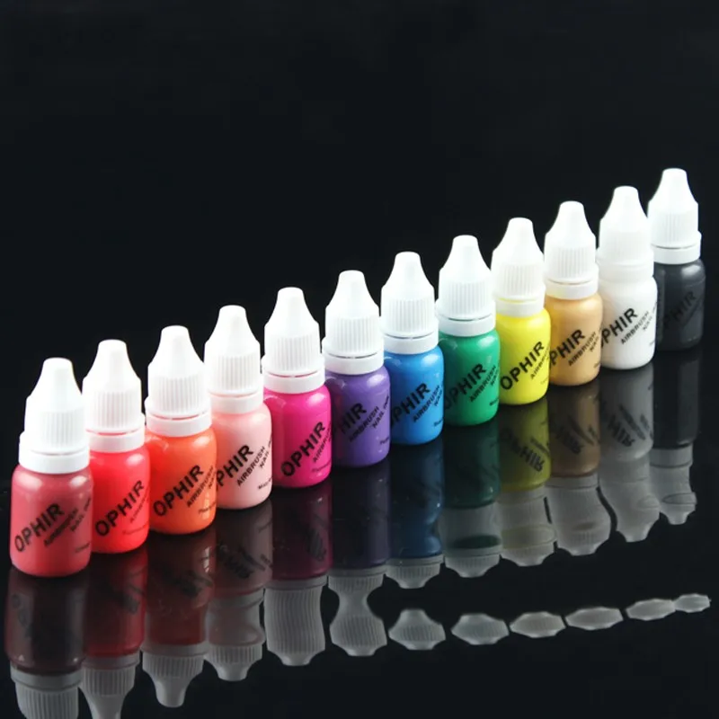 Набор аэрографов OPHIR Аэрограф для дизайна ногтей, 0,3 мм, с воздушным компрессором, 12 цветных чернил, 20 трафаретов, кисть и сумка, инструмент для ногтей _ OP-NA001