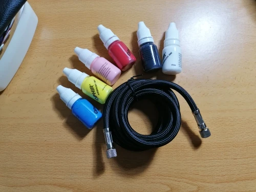 Полный набор Аэрограф, еще не протестирован (только что получил), длился почти 2 месяца, потому что он был доставлен в n Бельгия (после bijbetalen 35 евро)