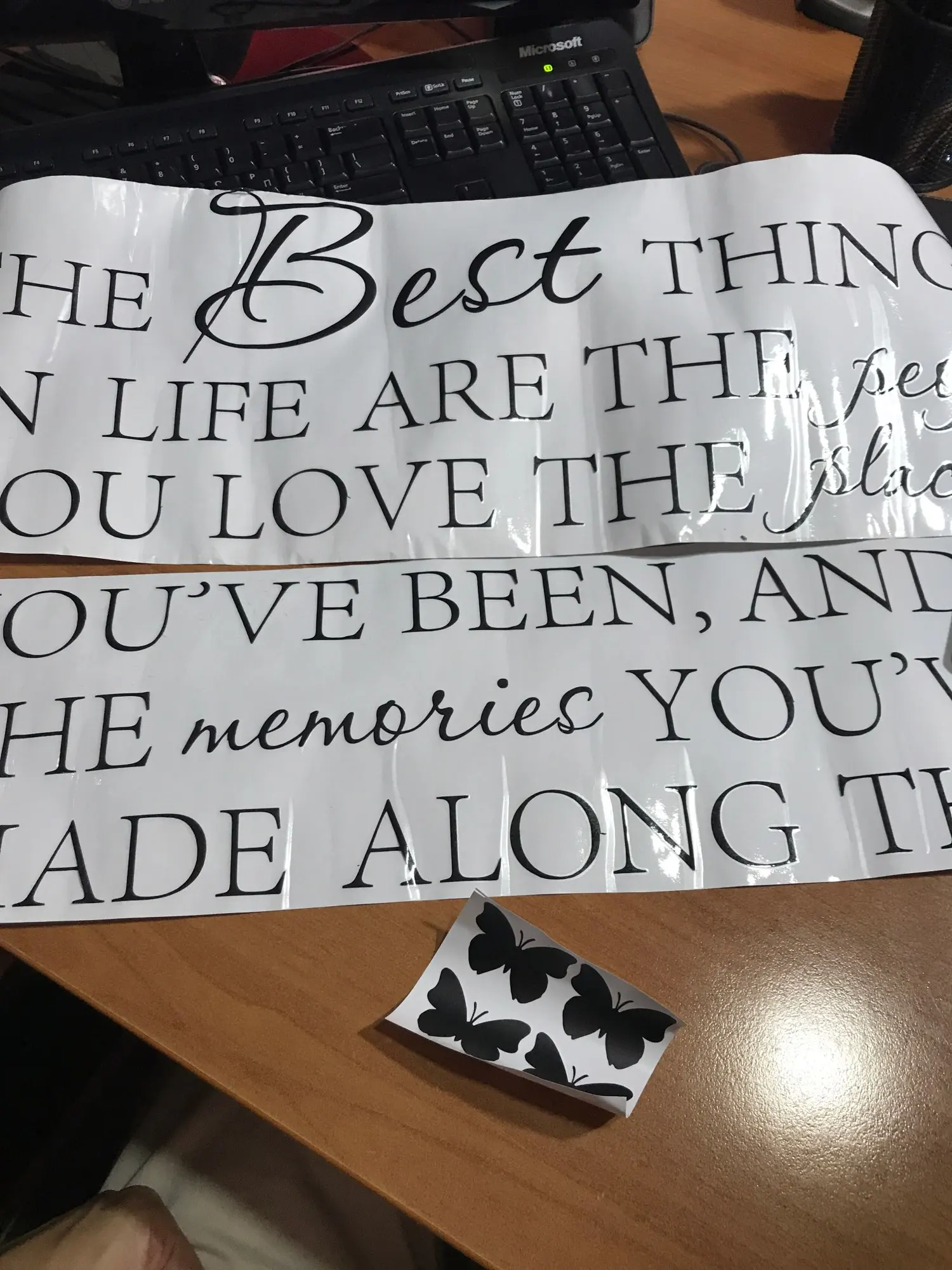 Буквы поставляются разделами на виниле, и слова должны быть вырезаны, чтобы добавить к слову, с тем, что конечный результат, который выходит более или менее прямым, зависит от большого опыта. Если бы он был полностью виниловым, как указано на фото, было бы гораздо лучше.