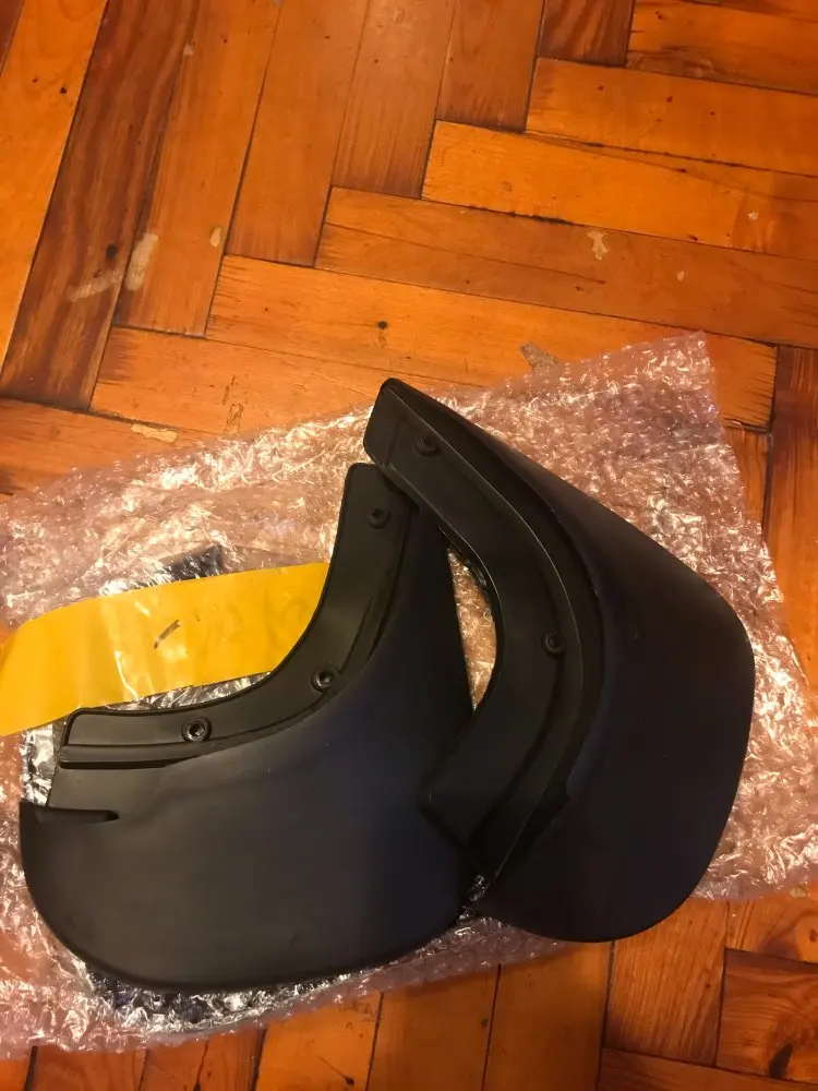все четыре брызговика немного, но всё же разные в размерах, при установке нужно дорабатывать