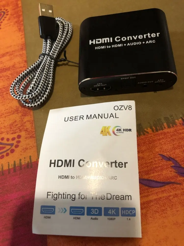 Купил, чтобы подключить между Apple TV и телевизором для вывода звука через 3.5mm на активные колонки. В телевизор подключил в HDMI/ARC. В телевизоре нужно переключить выход звука на ARC, на самом устройстве переключатели при таком подключении ни на что не влияют. 1080р 60 Гц SDR пропускает без проблем. Звук вполне качественный. Музыку можно кидать с iphone через apple tv. Мне устройство не подошло по простой причине: регулировка звука возможна только на колонках - ни пульт телевизора, ни apple tv, ни iphone громкость не регулируют.
