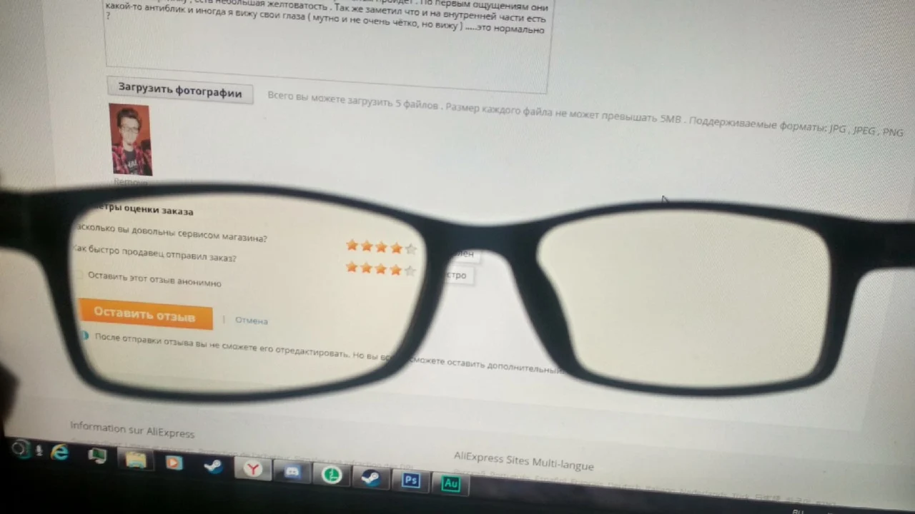 Очки пришли в целости и сохранности . Пока ничего не могу сказать о результате которые они дают так как я их только что получил , но они приятные на ощупь и очень лёгкие . Немного не привычно будет в них сидеть по началу , но это со временем пройдёт . По первым ощущениям они смягчают картинку , есть небольшая желтоватость . Так же заметил что и на внутренней части есть какой-то антиблик и иногда я вижу свои глаза ( мутно и не очень чётко, но вижу ) .....это нормально ?
