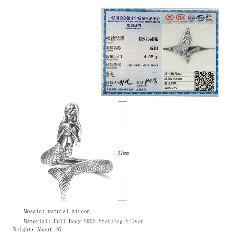 Модные женские кольца на палец Kinel горячая Распродажа из серебра 100% пробы с изображением семейства животных русалок, Подарочные ювелирные изделия из серебра 925 пробы