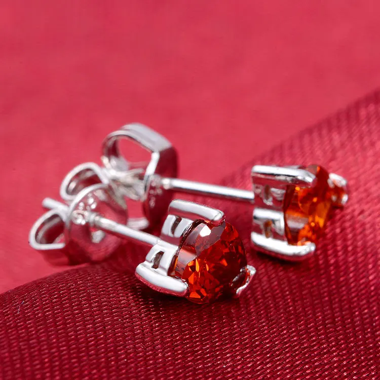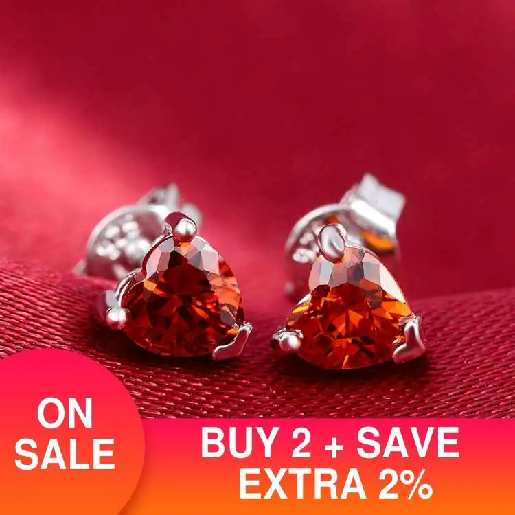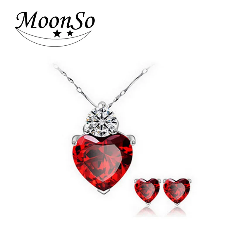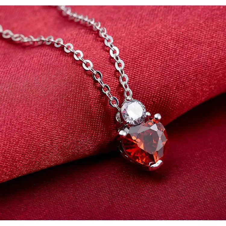 Серьги-гвоздики и ожерелье из серебра 100% пробы с красным австрийским кристаллом в форме сердца, 2 шт. в упаковке, J580