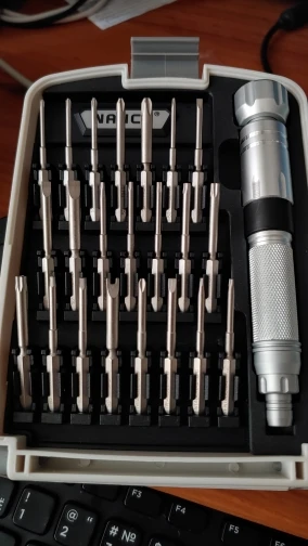 Так как на красивой картинке под 45 градусов набор не устанавливается!!!Только лёжа в горизонтальном положении.Сама отвертка немного длинноватая(до насечки), но это дело привычки.Без выдвижения удлиняющего штока люфт приемлемый, но как только выдвигаешь шток, начинает всё болтаться...Я не понимаю для чего это удлинение, если при необходимости длинной отвертки не пройдет по толщине узел куда вставляются сами биты...Лучше бы добавили основные удлинённые биты.Сами биты слабо намагничены и еле удерживают винтики...Первое впечатление от набора... скажем так ожидал большего, судя по отзывам предыдущих покупателей, или просто отзывов из вне!По крепости металла самих бит, естественно пока ничего сказать не могу,всё покажет время, может они соответствуют заявленным характеристикам, на что надеюсь, всё же металл S2.Немного поработав этим набором, постараюсь дополнить свое мнение и по этому поводу.Хотя из множества наборов, как мне показалось, этот набор самый привлекательный.