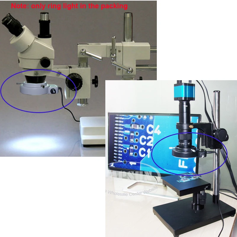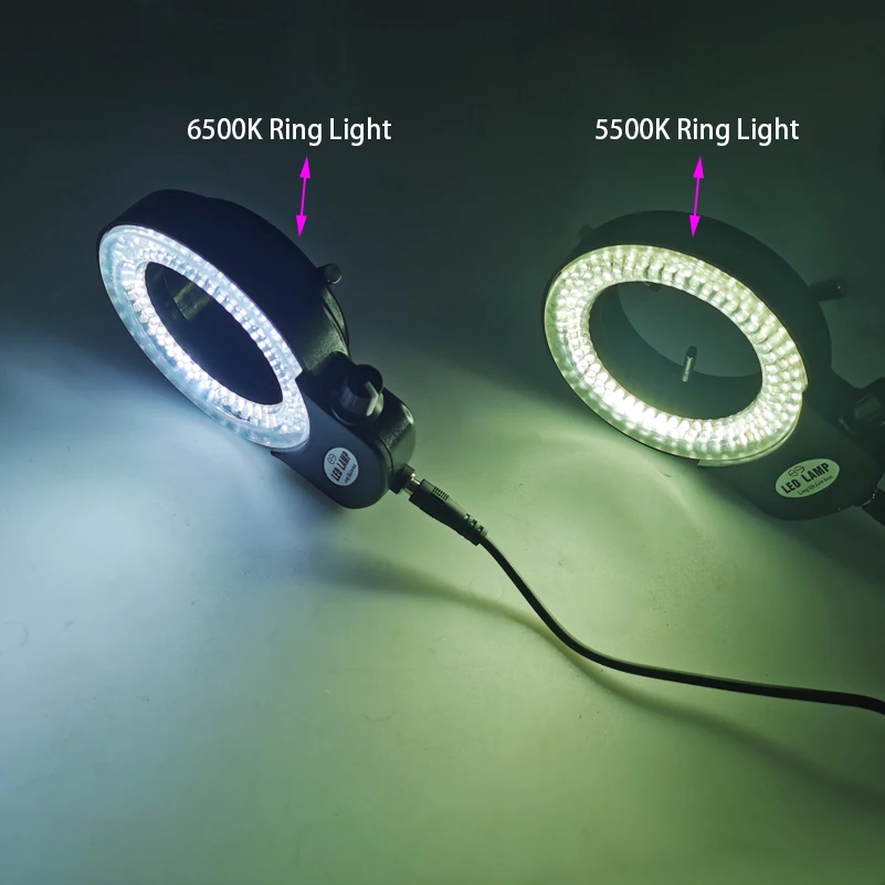 Регулируемая кольцесветильник Светодиодная лампа 6500K 5500K 144, лампа для промышленного стереомикроскопа, объектив камеры, лупа, адаптер 110-240 В