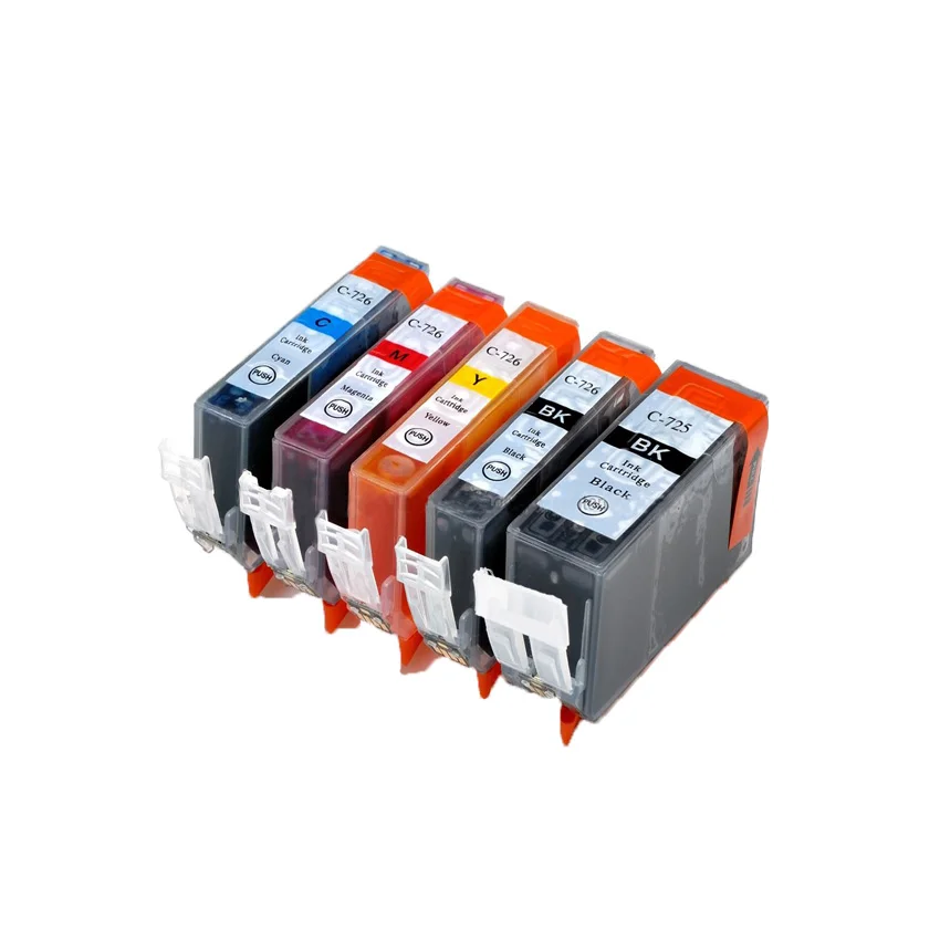 5x Черный чернильный картридж совместим с Canon PGI-725 BK(20 мл);5 черных чернильных картриджей, совместимых с Canon CLI-726 BK (10 мл);5x Cyan чернильный картридж совместим с Canon CLI-726 C (10 мл)5 х пурпурный чернильный картридж совместим с Canon CLI-726 M (10 мл);