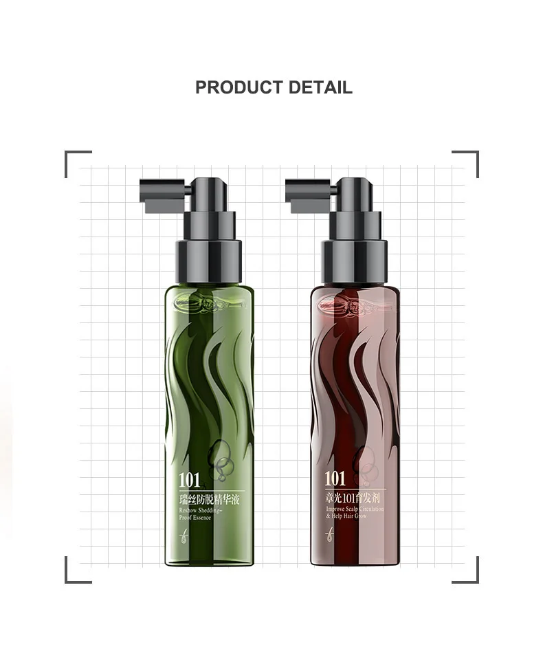 Название продукта: тоник для волос 101B Formula & 101 Formula Происхождение: Китай Емкость: 80 мл + 80 мл Ингредиенты: китайские травы, без побочных эффектов Эффект: улучшают циркуляцию кожи головы и помогают волосам расти, балансируют жир и предотвращают выпадение волос Использование: нанесите на кожу головы для впитывания, используйте один тоник утром, другой вечером, принимайте по 5-10 мл каждый раз, не нужно мыть Для людей: у людей с тонкими волосами или алопецией areata, много выпадения волос, жирное выпадение волос, послеродовое выпадение волос, унисекс, без возрастного ограничения Объявления: использовать с осторожностью у аллергиков, при попадании в глаза сразу краску водой