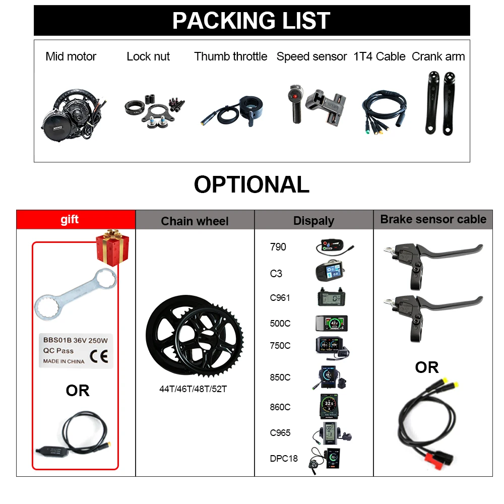 Советы:Наборы моторов среднего привода, доставляемые из США и Европы, не включают бесплатные подарки и не могут обменять или возвращать детали.