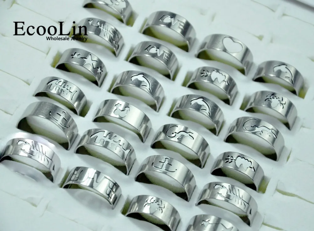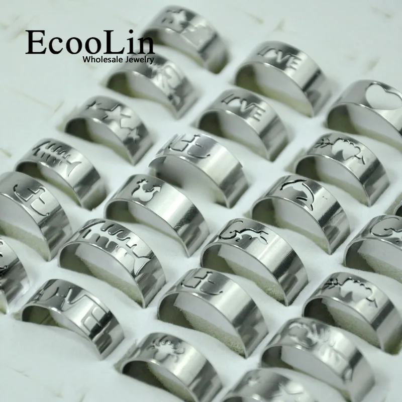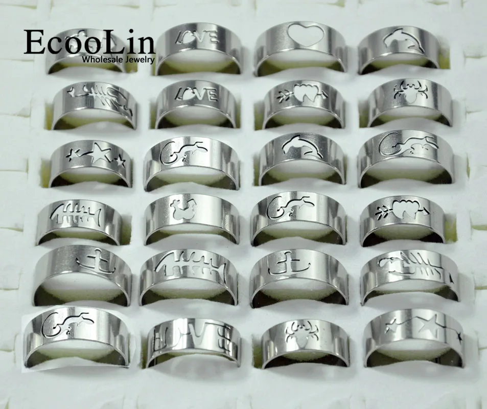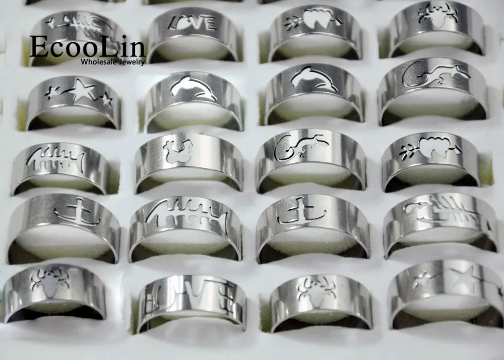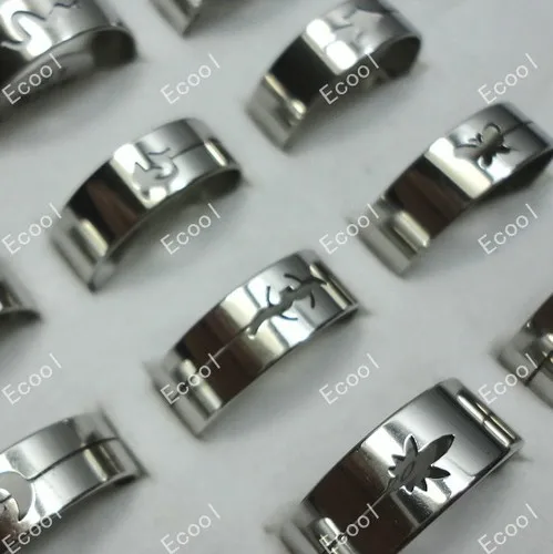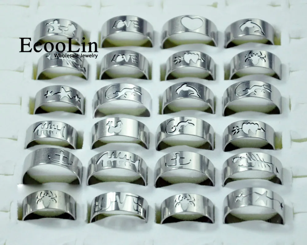 Мужские кольца из нержавеющей стали с ажурным узором, 50 шт., смешанные партии, оптовая продажа, мужские ювелирные изделия, пакеты LB117
