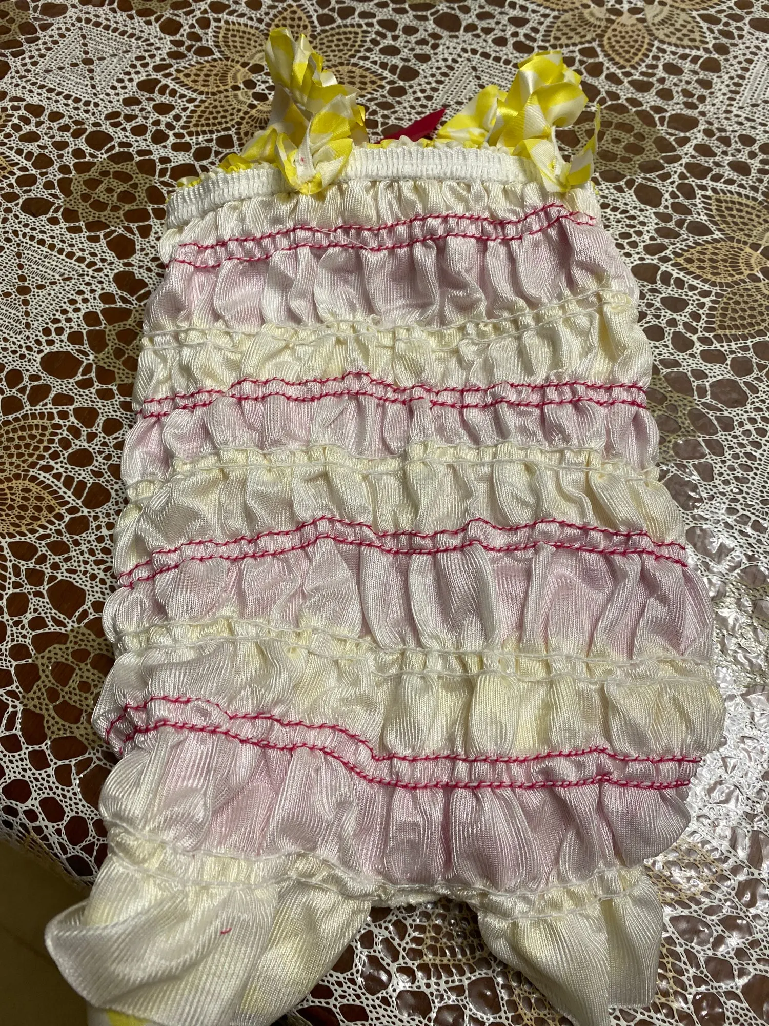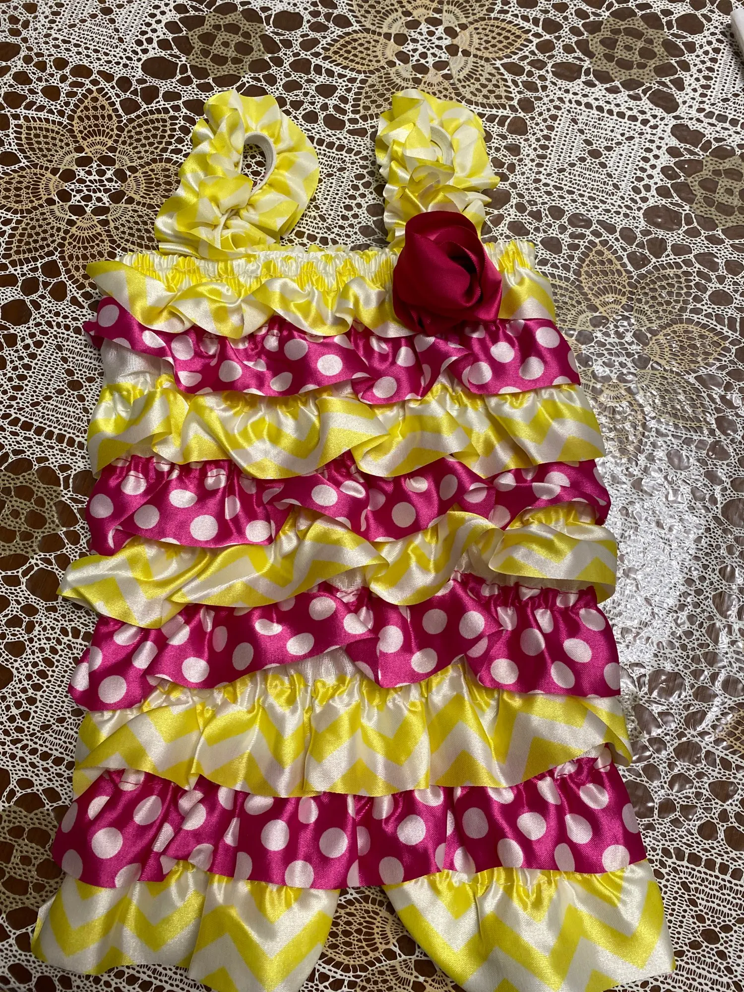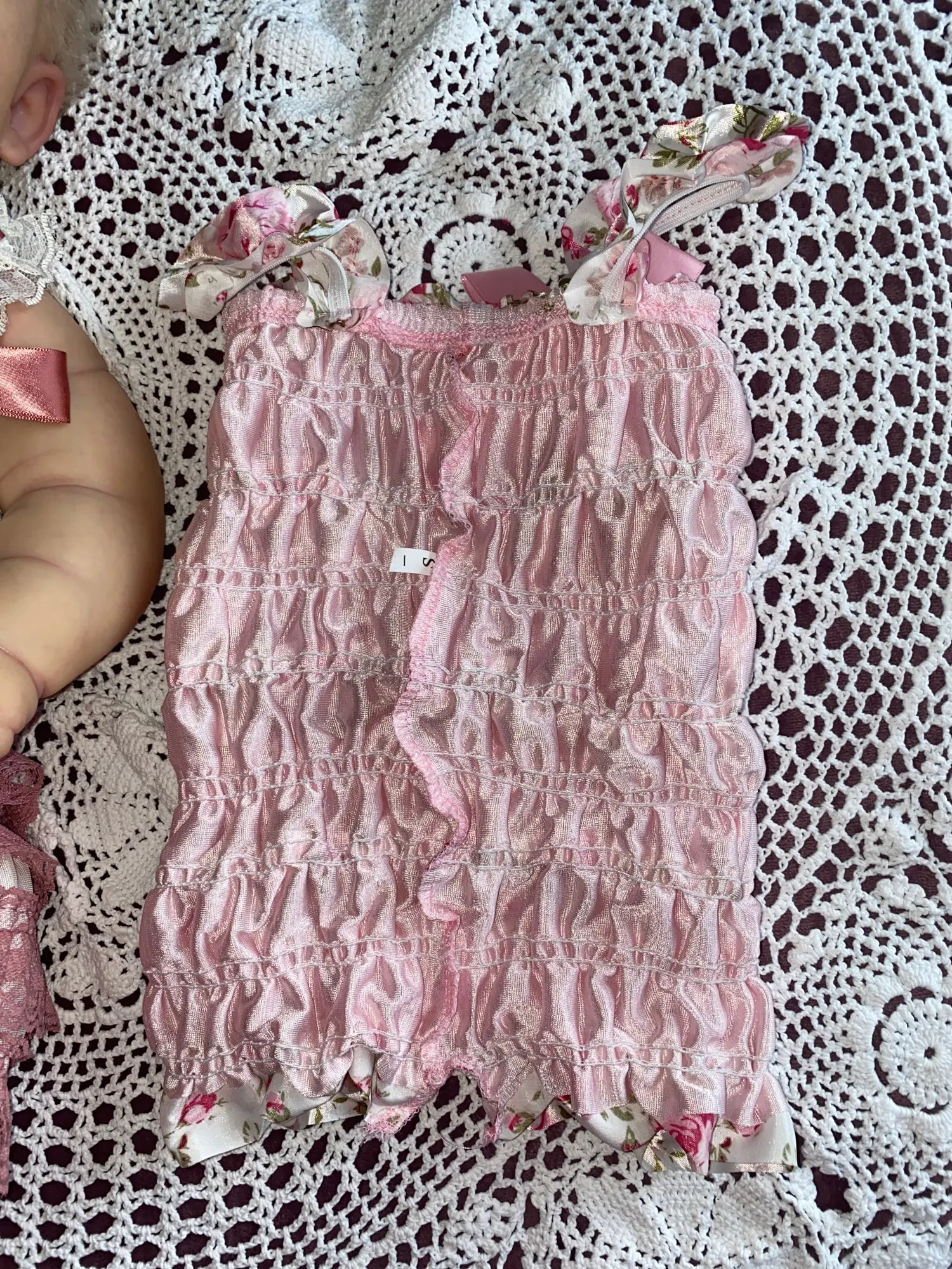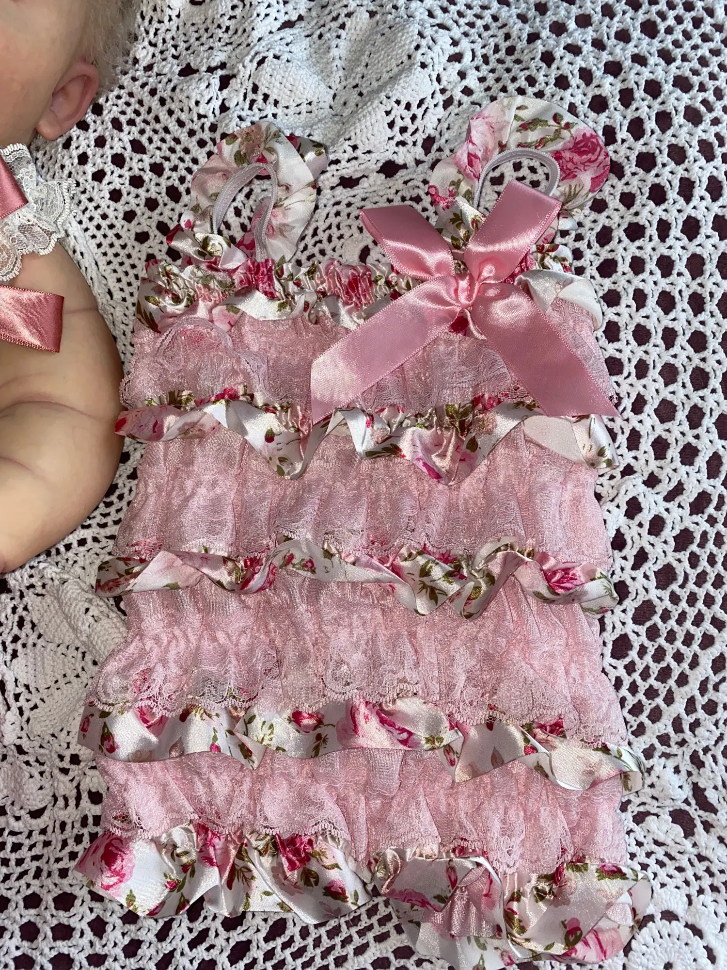 Платье красивое. Нужно вывесить на балконе чтоб ветерком распушилось. Брала самый маленький размер для фотосессии новорождённых. Для ребёнка нужно одевать на кофточку иначе резиночки внутри могут надавить . Для фото супер нарядное. Брала еще одну расцветку платья этого же размера но оно оказалось на 5 см длиннее и на сантиметр уже в объёме. Нитки ненужные отрезала и края ленточки запаяла зажигалкой самостоятельно. Купила такие же подходящие в тон и цвет обувь