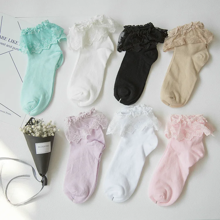 Женские носки в стиле "Лолита" Харадзюку, милые кружевные короткие ...