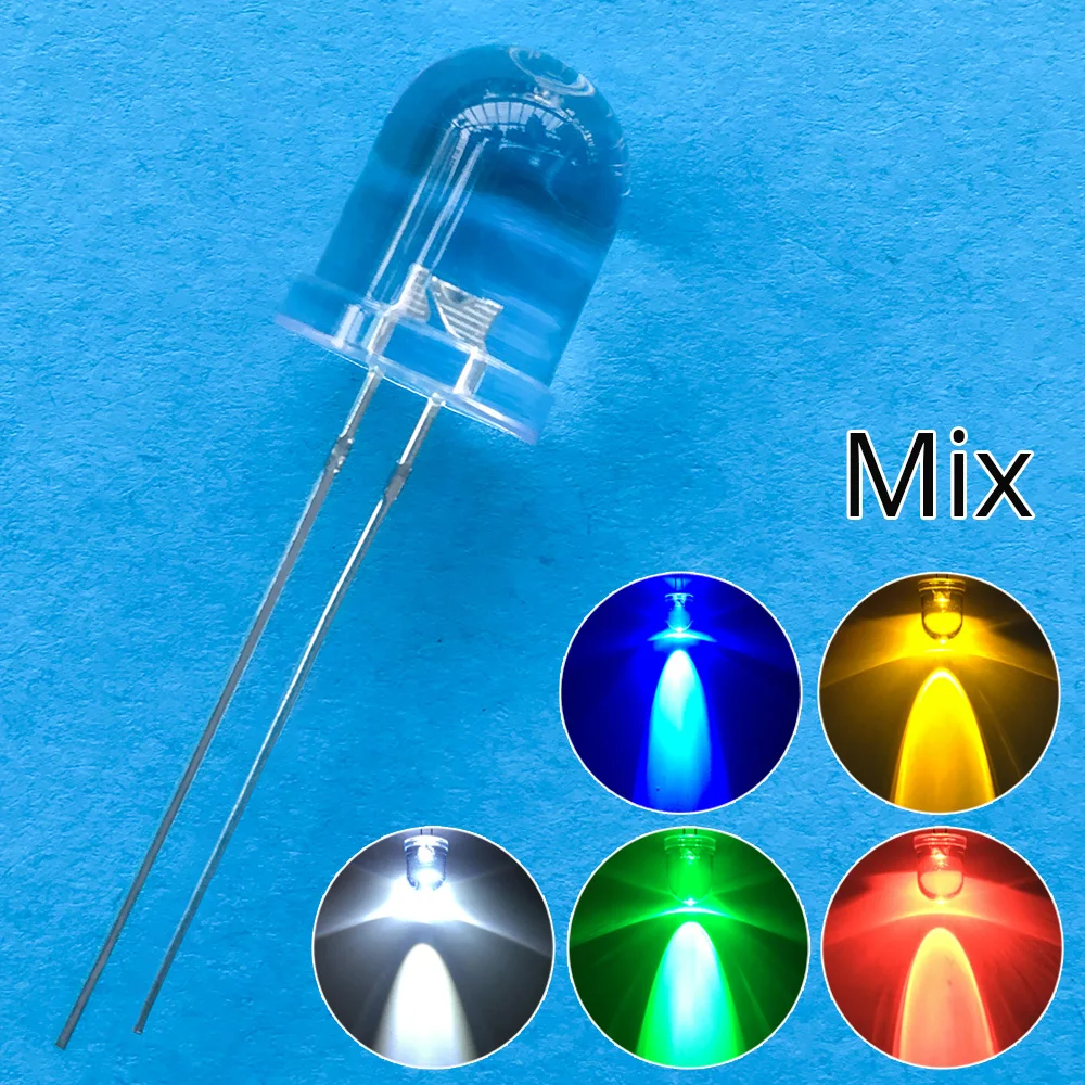 50шт 10мм Круглая вершина Ультра яркий Супер яркий светодиодный белый Красный Зеленый Синий желтый УФ розовый оранжевый Свет лампы