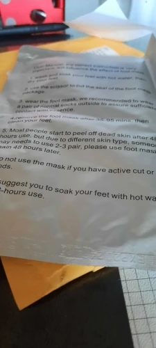 -Когда вы увидите, что ваши ноги начали шелушиться, крайне рекомендуется замачивать их каждый вечер в теплой воде (также хорошо добавить уксус). Вы можете использовать стопу инструмент для отшелушивания, чтобы удалить омертвевшую кожу (будьте осторожны). Старайтесь не наносить лосьон/увлажняющий крем, потому что вы хотите, чтобы омертвевшая кожа слезла.Для достижения наилучших результатов:Если вы не увидите шелушения в течение 7 дней, вы можете использовать другую маску, чтобы усилить впитывание и ускорить процесс шелушения. Это не рекомендуется, если у Вас недавно очищенная кожа или раны/порезы.