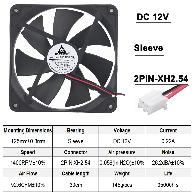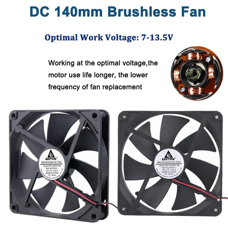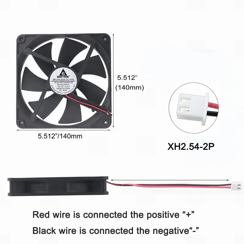 Gdstime DC 12V 2Pin Вентилятор охлаждения 140mm x 140mm x 25mm