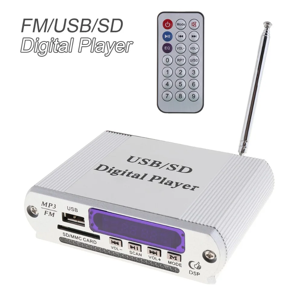 Мини-усилитель мощности для мотоцикла HY1008, цифровой ЖК-дисплей, mp3-плеер, FM-аудио; Моно, USB SD Пульт дистанционного управления