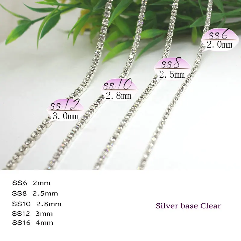 10 ярдоврулон прозрачный кристалл SS6-SS16 (2 мм-4 мм) Серебряный базовый стакан с цепочкой из страз швейная одежда стиль diy Красота аксессуары