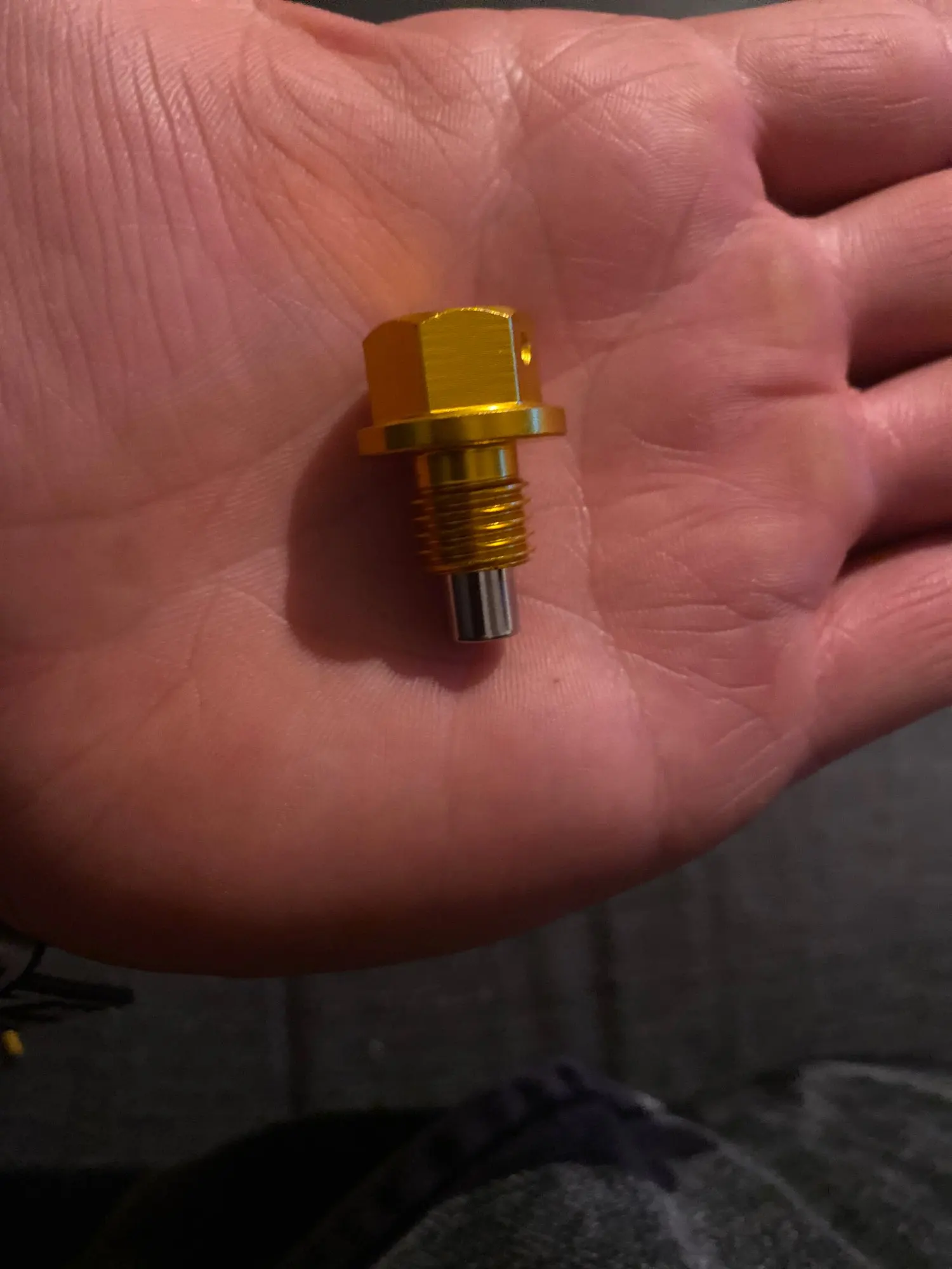 сам болт алюминиевый. магнит неодимовый, довольно сильный, но нужно понимать, что они работают до 80 градусов С. при нагреве выше, а масло в двигателе греется и выше ста градусов, мощность магнита сильно упадет. в принципе заказом доволен, только размер не тот заказал, так что буду перезаказывать.