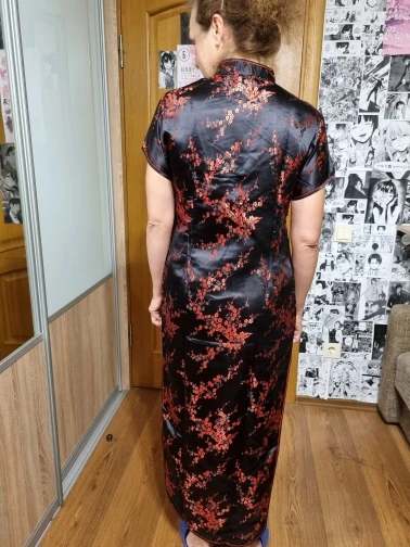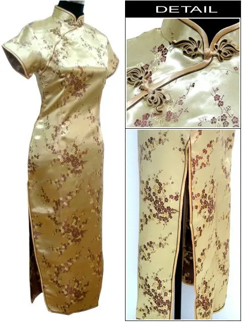 Бесплатная доставка светло-желтое женское атласное длинное платье Ципао с цветами размера плюс S M L XL XXL XXXL 4XL 5XL 6XL J3088