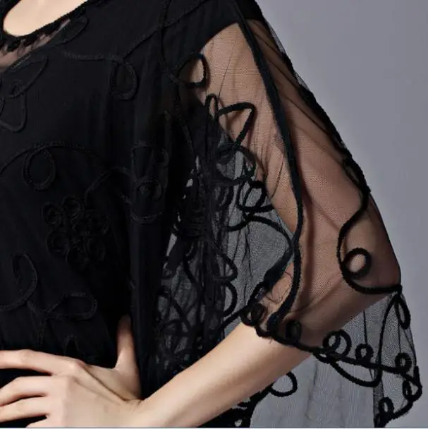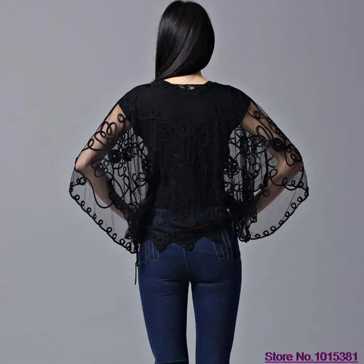 2015 женская Высококачественная летняя свободная просвечивающаяся блузка шифоновая кружевная перспектива летучая мышь женский рубашка кардиган 803J 38
