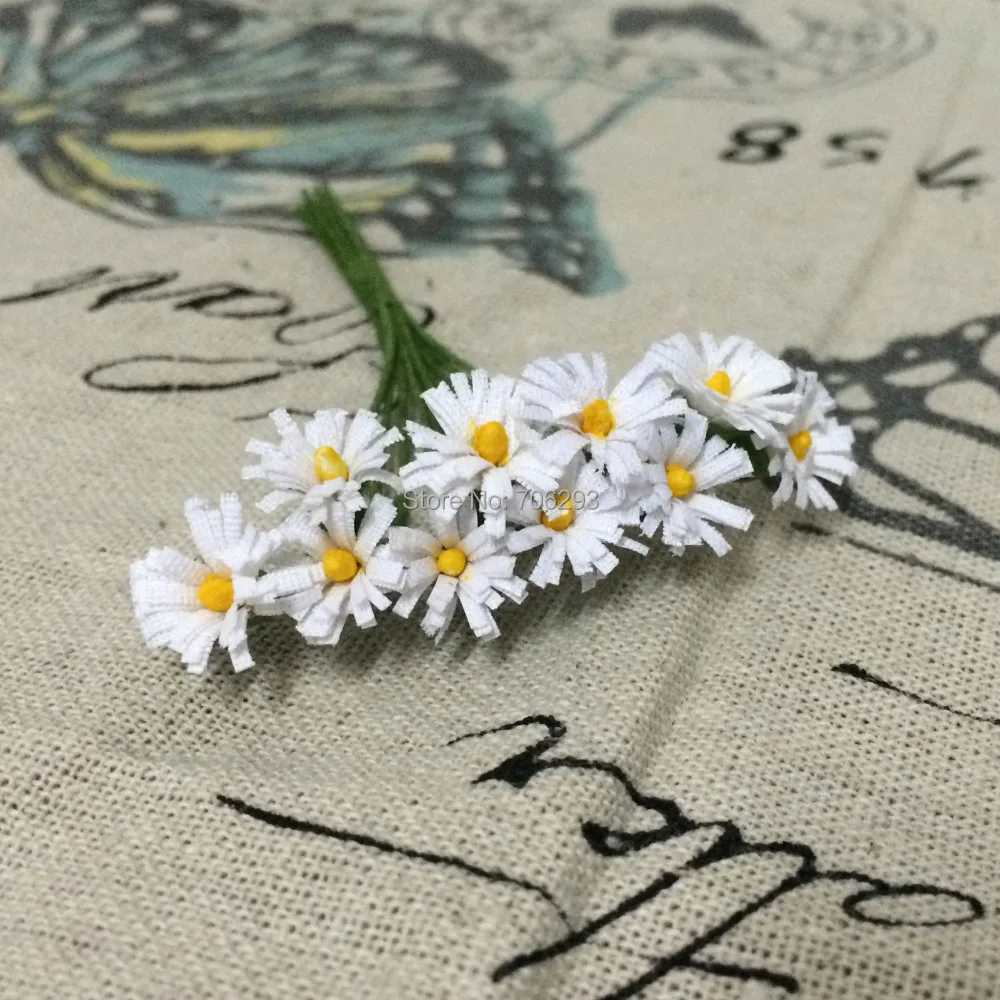 2014 Новинка 1 см (120 шт.лот) букет цветов желтого цвета из тутовой бумагистебель проволокиСкрапбукинг искусственные цветы