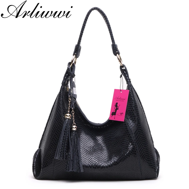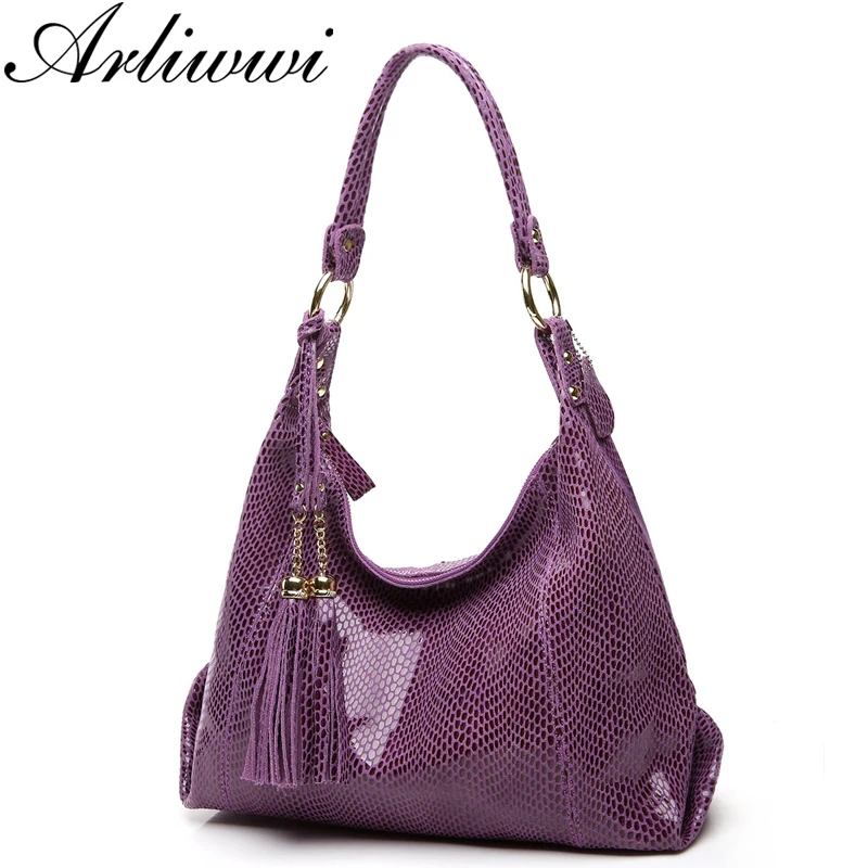 Arliwwi брендовые настоящие Мягкие Замшевые женские сумки через плечо из коровьей кожи с кисточками блестящая змеиная кожа для женщин GY11