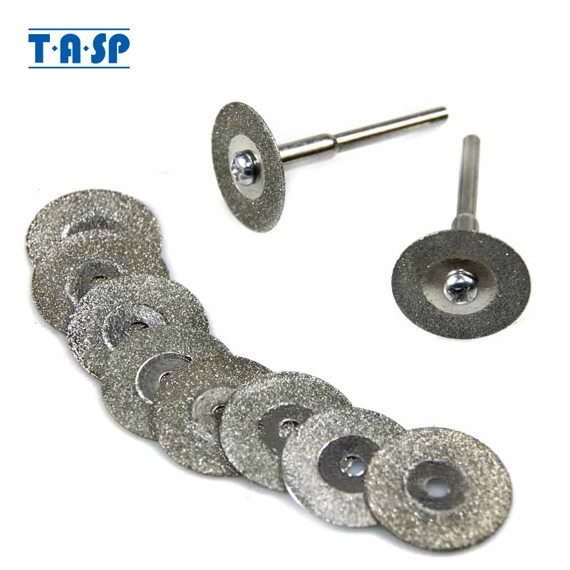 Набор дисковых пил TASP с алмазным покрытием, 10 шт., 20 мм, набор дисковых пил, аксессуары для роторного инструмента с хвостовиком 3,2 мм