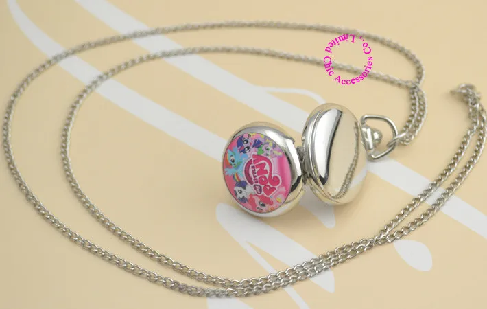 Модные розовые часы с рисунком, милые карманные часы My Little Horse с ожерельем, серебристые женские часы для девушек и женщин, антиломкие часы хорошего качества