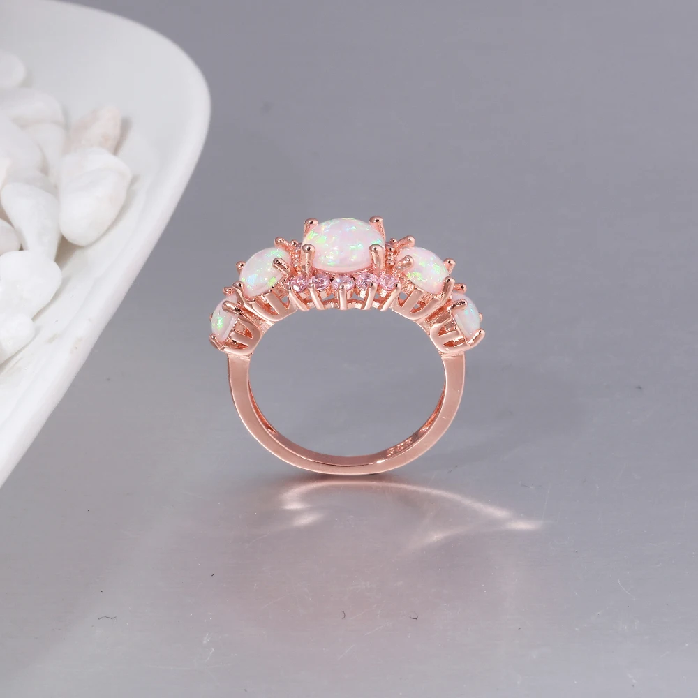 Кольцо женское с опалом и овальным круглым камнем, 5 цветов