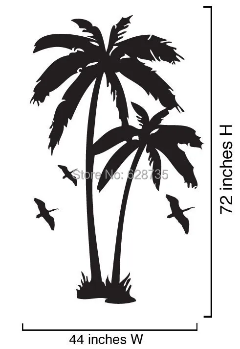 183 см x 112 см наклейка на стену с большими пальмами, высокие ладони с птицами, Виниловая наклейка на стену для украшения дома, бесплатная доставка