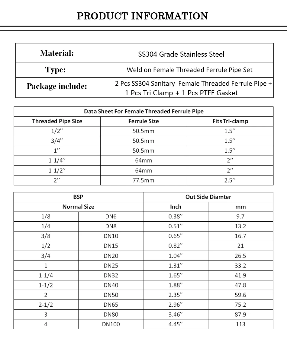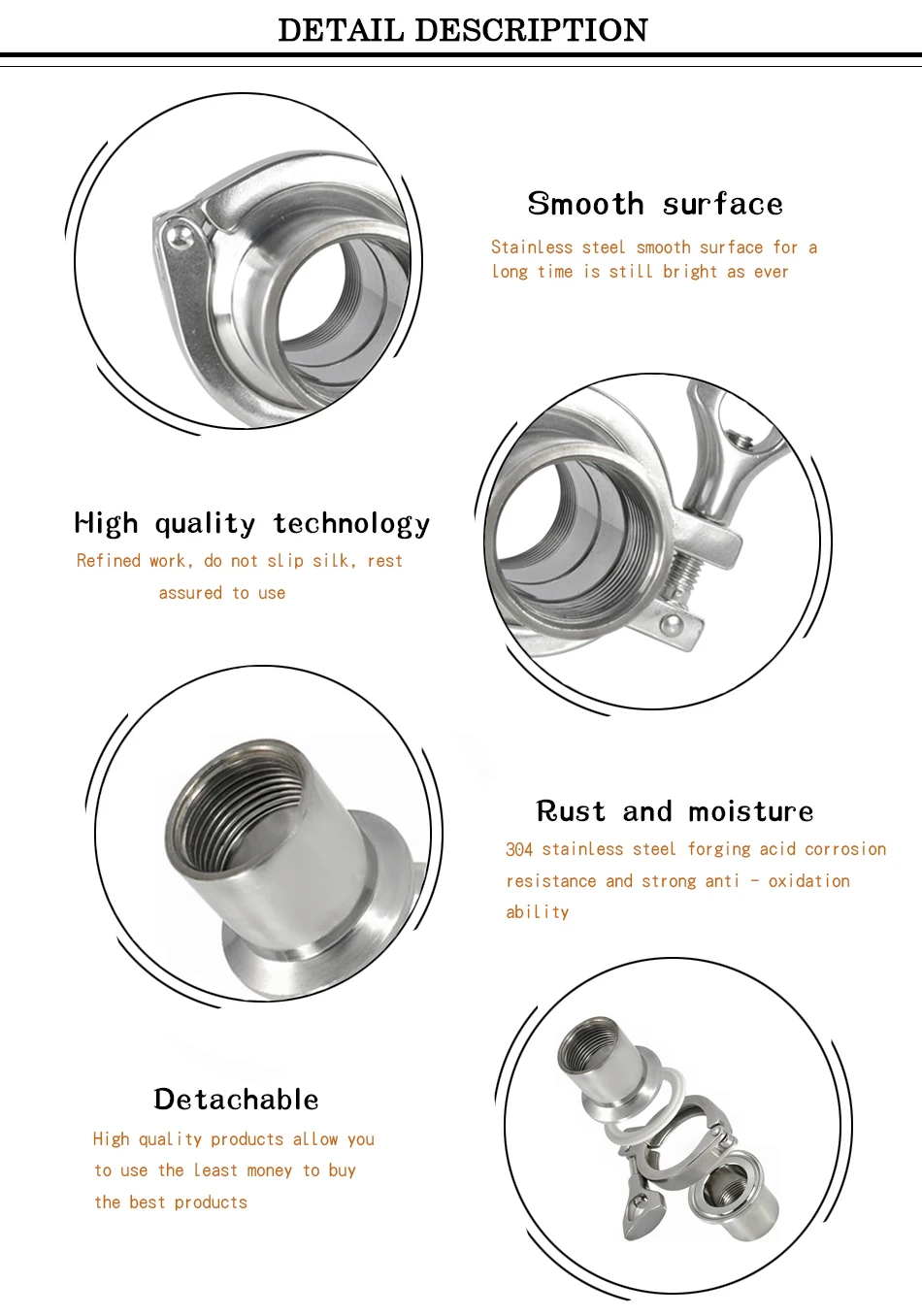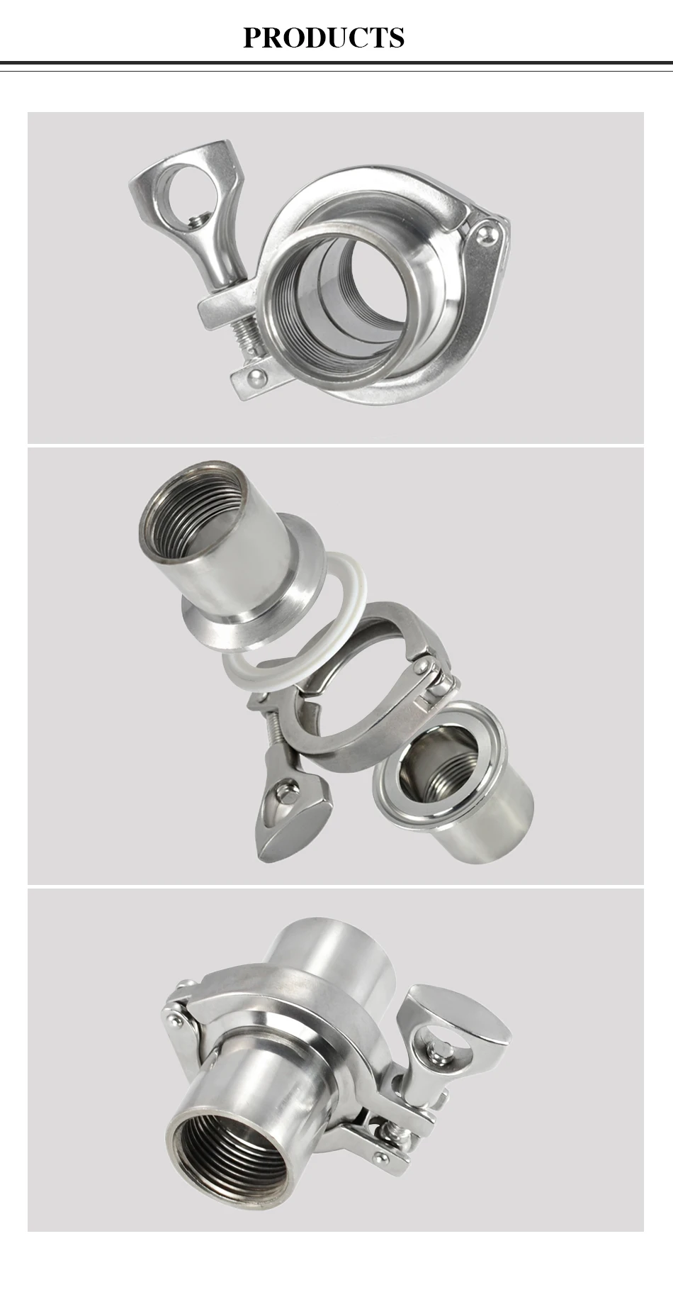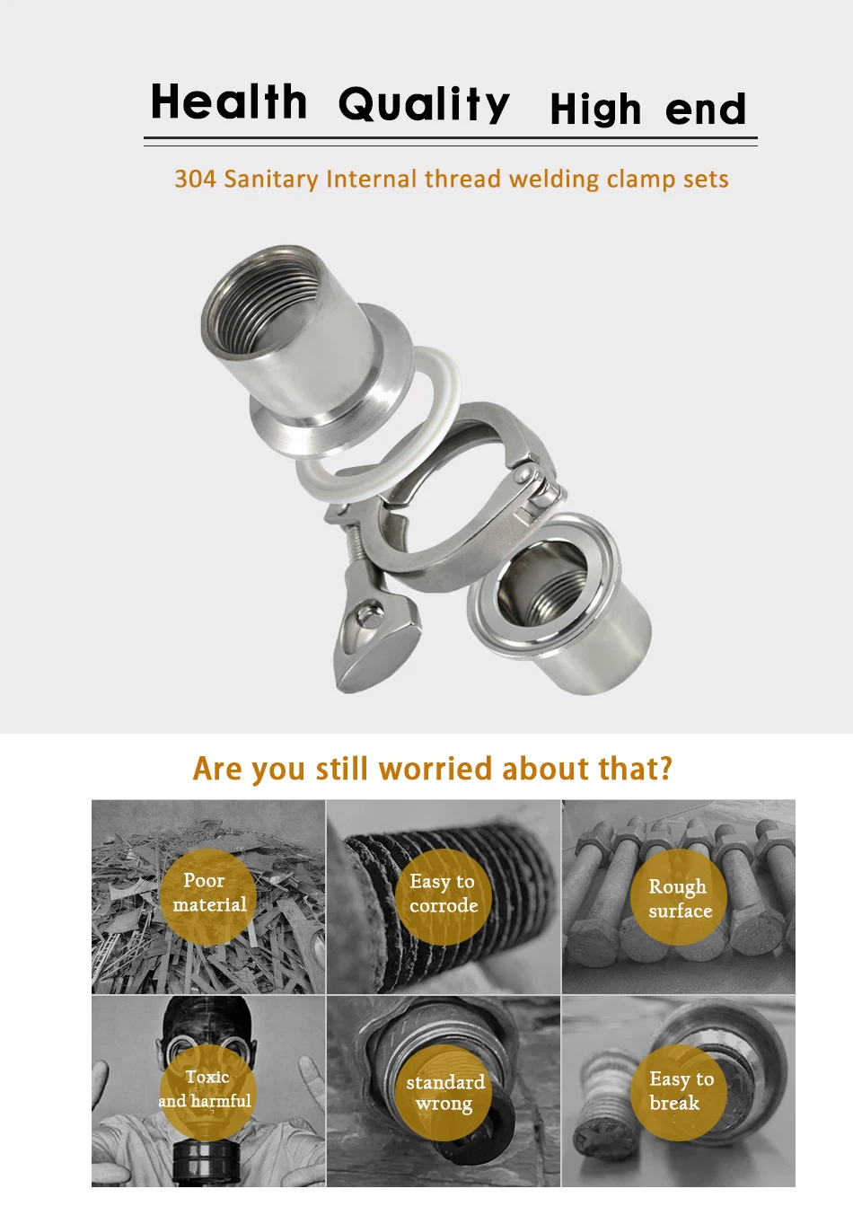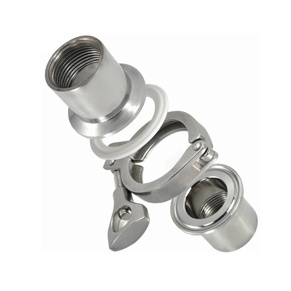 Санитарные фитинги YQBS с внутренней резьбой для труб + тройной зажим + ПТФЭ или силиконовая прокладка из нержавеющей стали SS304