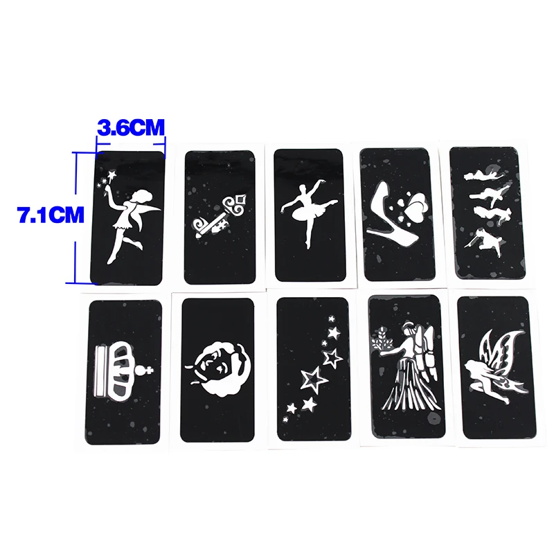 Трафарет для аэрографа, набор из 10 шт., трафареты для Временной Татуировки (Серия Angel), для боди-арта, блеск, 7,1 см x 3,6 см _ TA032C