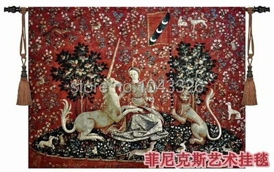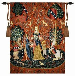 Бельгийские гобелены, серия с единорогом в средневековом стиле, большие размеры 103 * диван с обивкой из гобелена см, тканевая картина, подвесное покрытие на стену