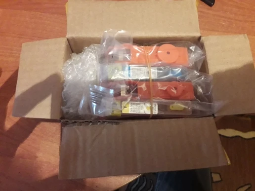 Заказ получен довольно быстро, 10 дней до Татарстана, отслеживание было на всем пути. Упаковано в пакет с пупырками. Сами картриджи были запечатаны под одним пакетом, а место с чипами вскрыто. Заправил, зарядил в принтер(hp b110b), а он их не видит, беда. Пишет, несовместимые картриджи. Жаль. Буду вести беседу с продавцом, может что подскажет. Если не запущу на печать, открою спор. Отзыв дополню, позже.