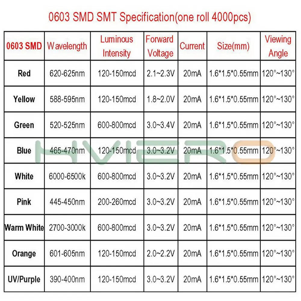 100 шт. 0603 белый красный зеленый синий желтый ультра яркий SMD 20MA SMT СВЕТОДИОДНЫЙ диод чип светоизлучающие диоды сверхъярсветильник световые бусины