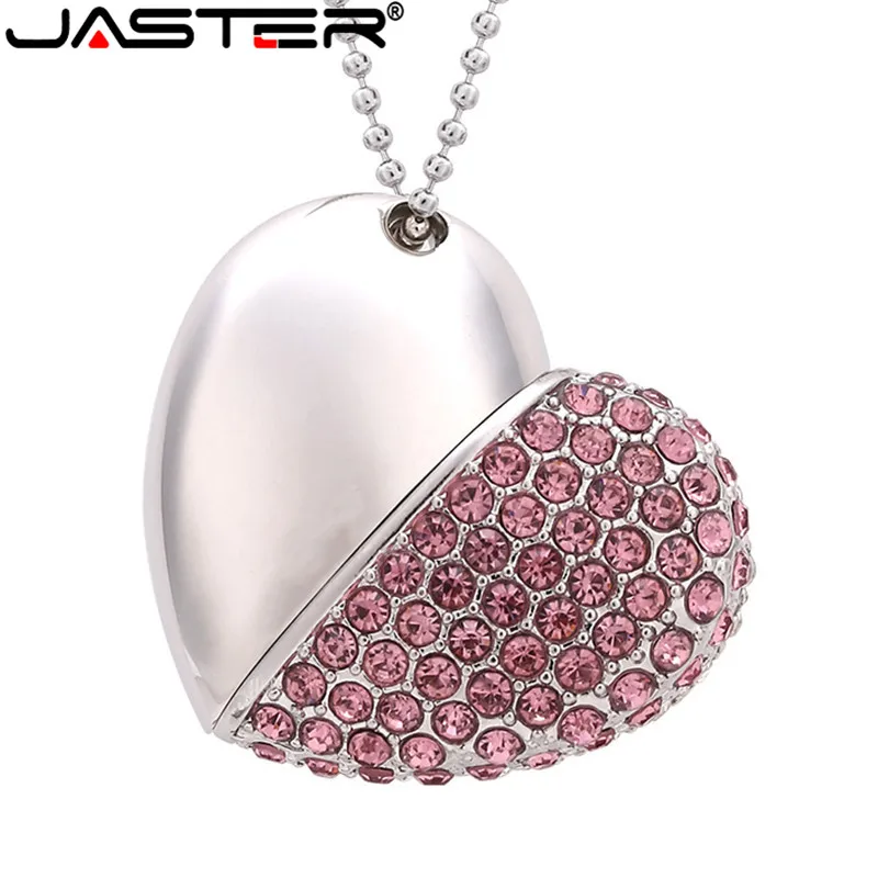 USB флеш-накопитель JASTER, металлический флеш-накопитель с кристаллами love Heart, Флешка из драгоценных камней, специальная флешка, 64 ГБ16 ГБ32 ГБ, карта памяти со стразами