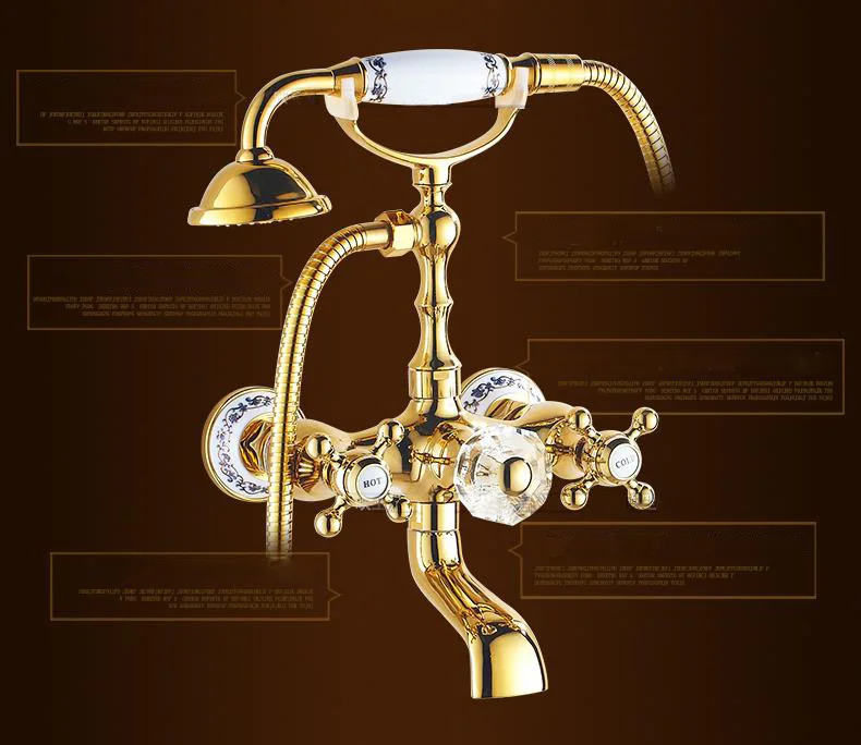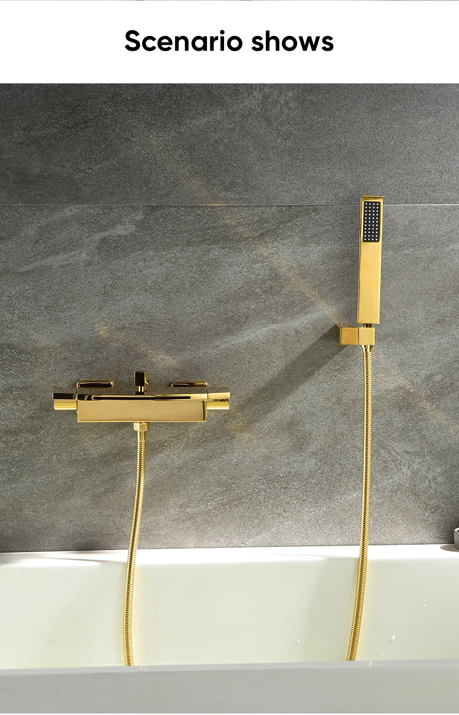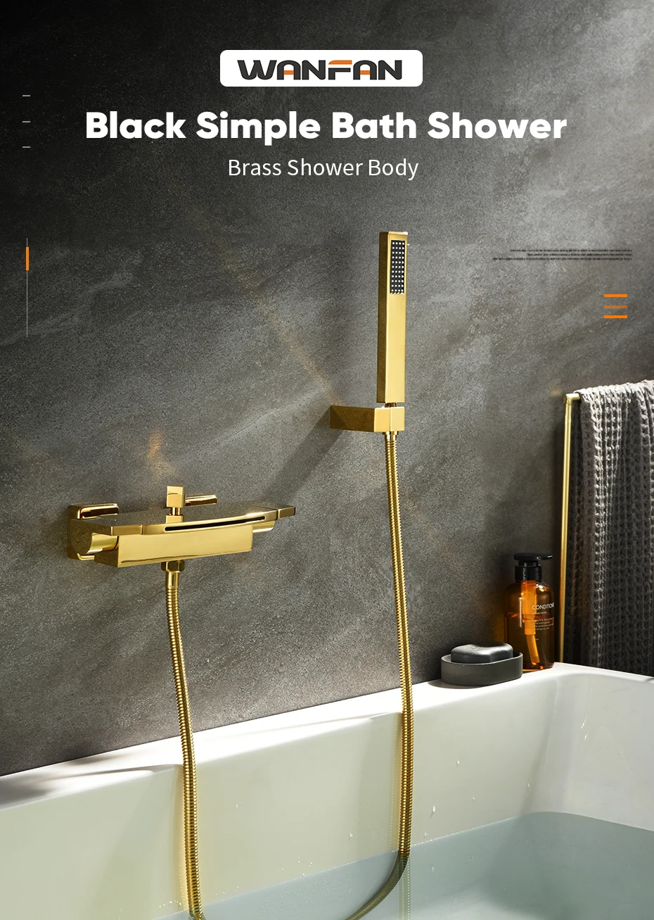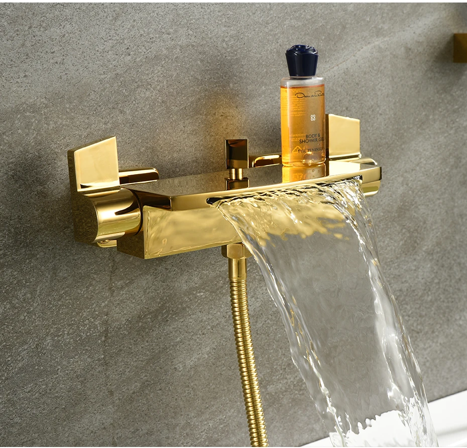 Смесители для ванны, роскошный золотой латунный Смеситель для ванной комнаты, настенный комплект ручной душевой лейки, наборы смесителей для душа HS-G018