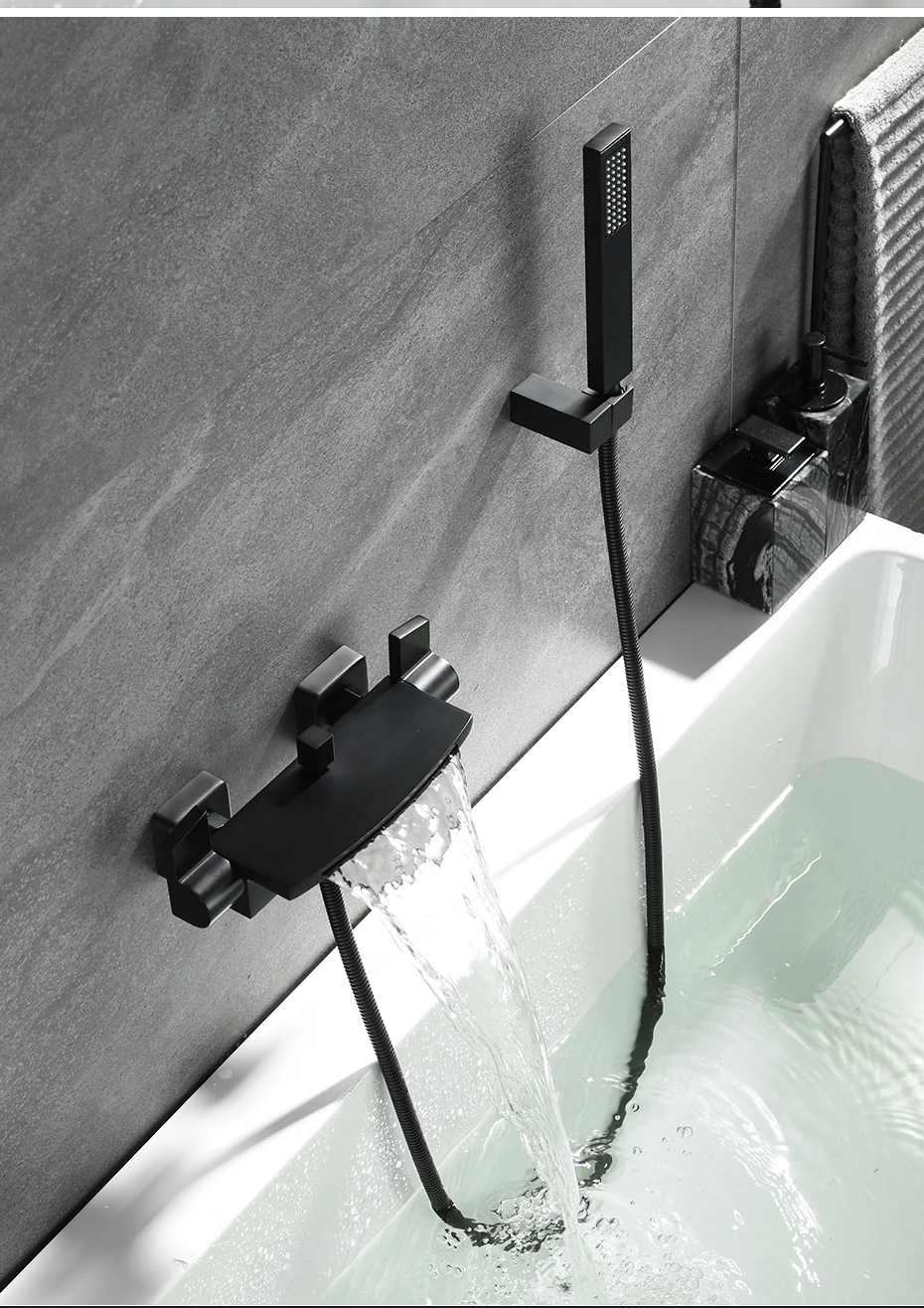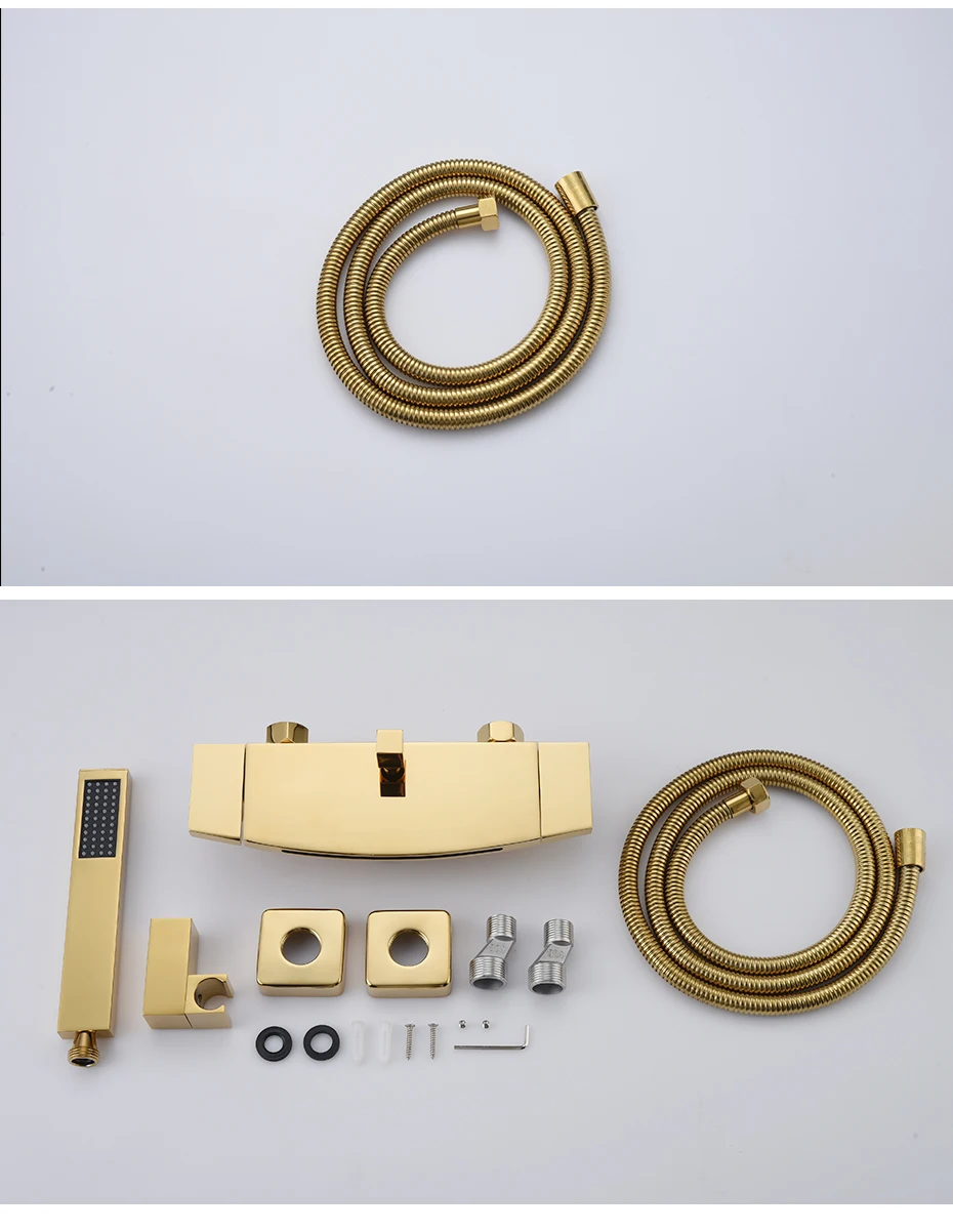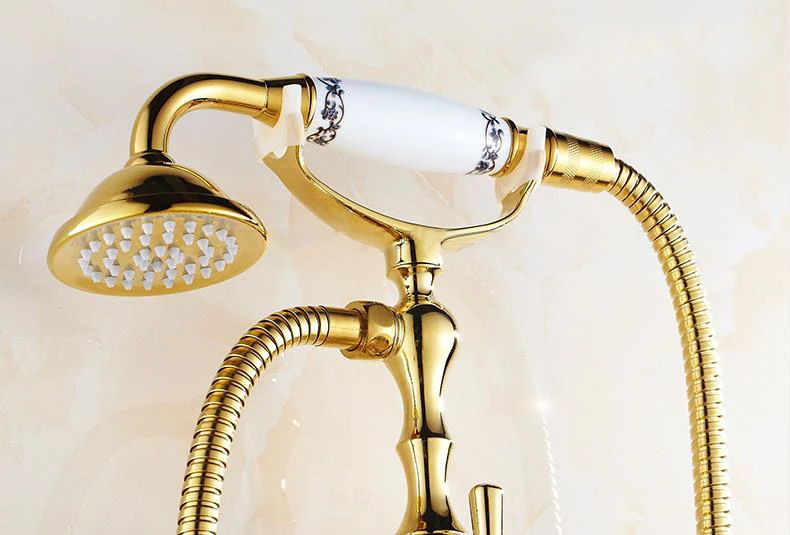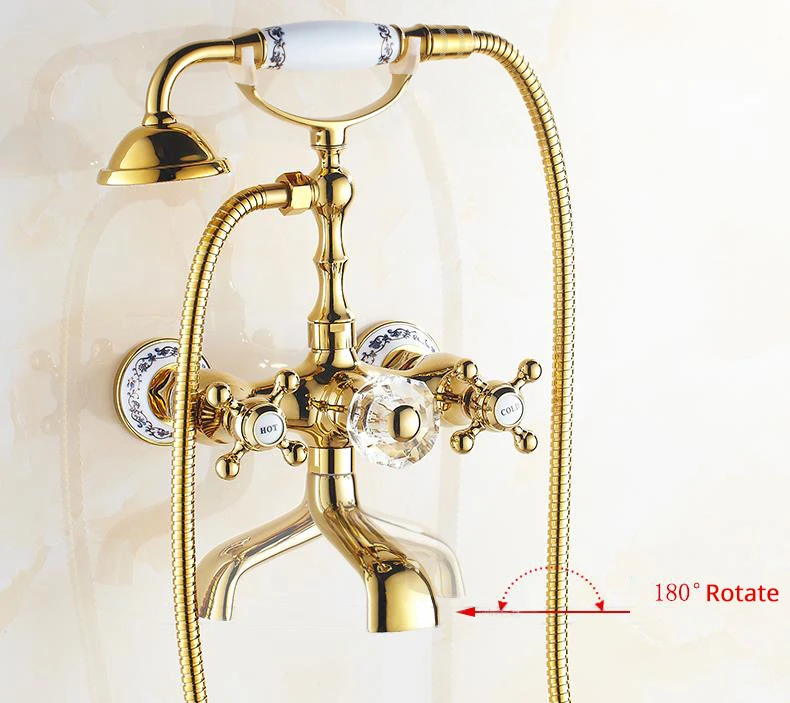 Смесители для ванны, роскошный золотой латунный Смеситель для ванной комнаты, настенный комплект ручной душевой лейки, наборы смесителей для душа HS-G018
