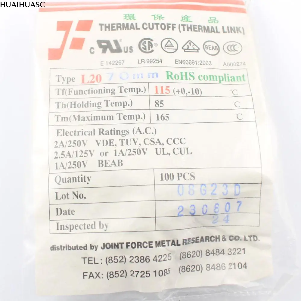 10 шт., квадратный предохранитель L20, 115 градусов, 2 А, 250 В