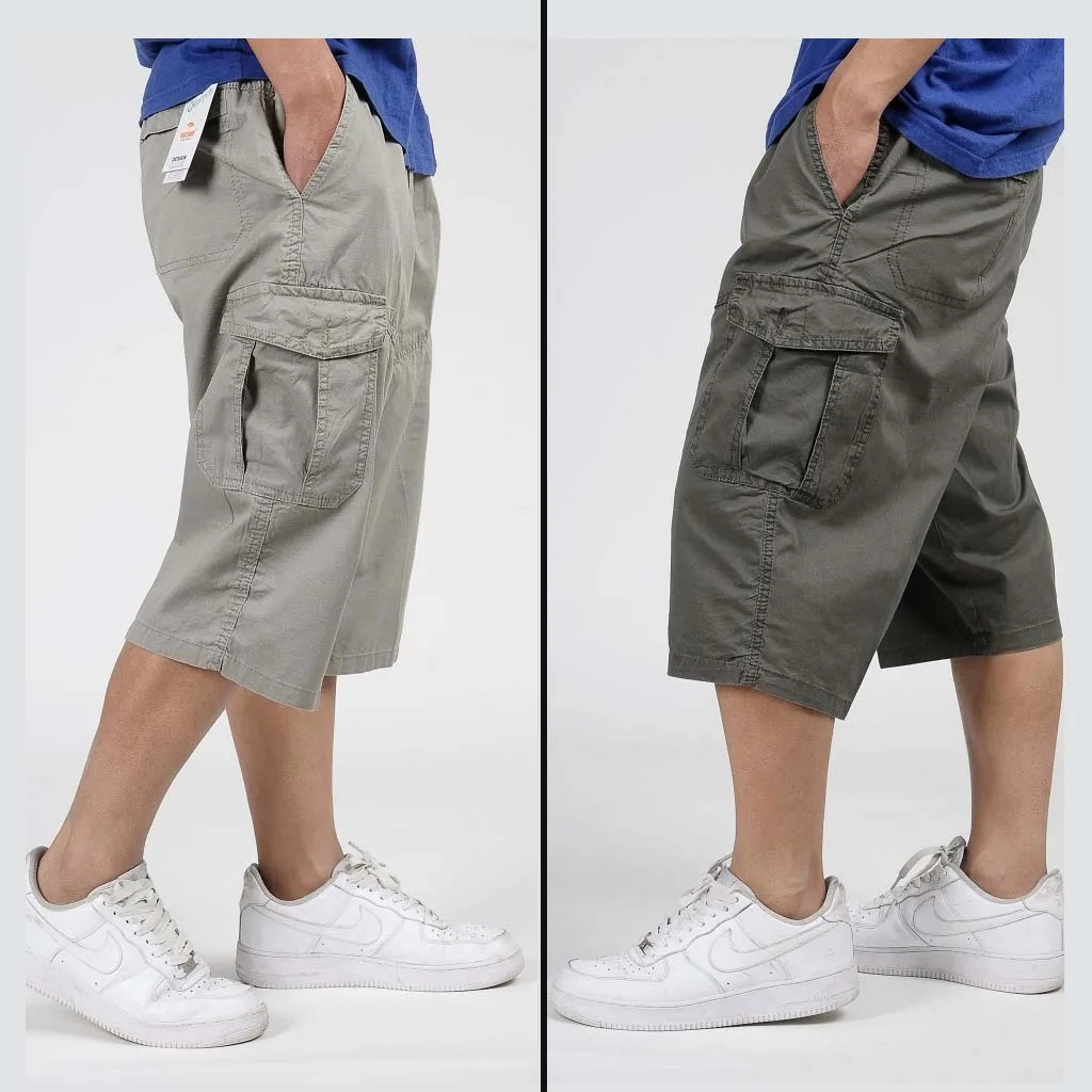 Военный стиль летние мужчины багги грузовой хлопок колен брюки случайные мужской брюк большие свободные большой размер khaki xxl 3xl 4xl 5xl 6xl