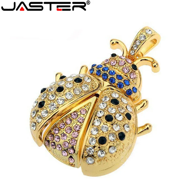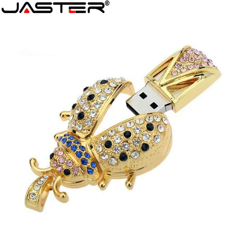 Флэш-накопитель JASTER Lovely beetle с кристаллами, модная металлическая Флэшка в виде насекомых, 4 ГБ, 16 ГБ, 32 ГБ, 64 ГБ, карта памяти в подарок