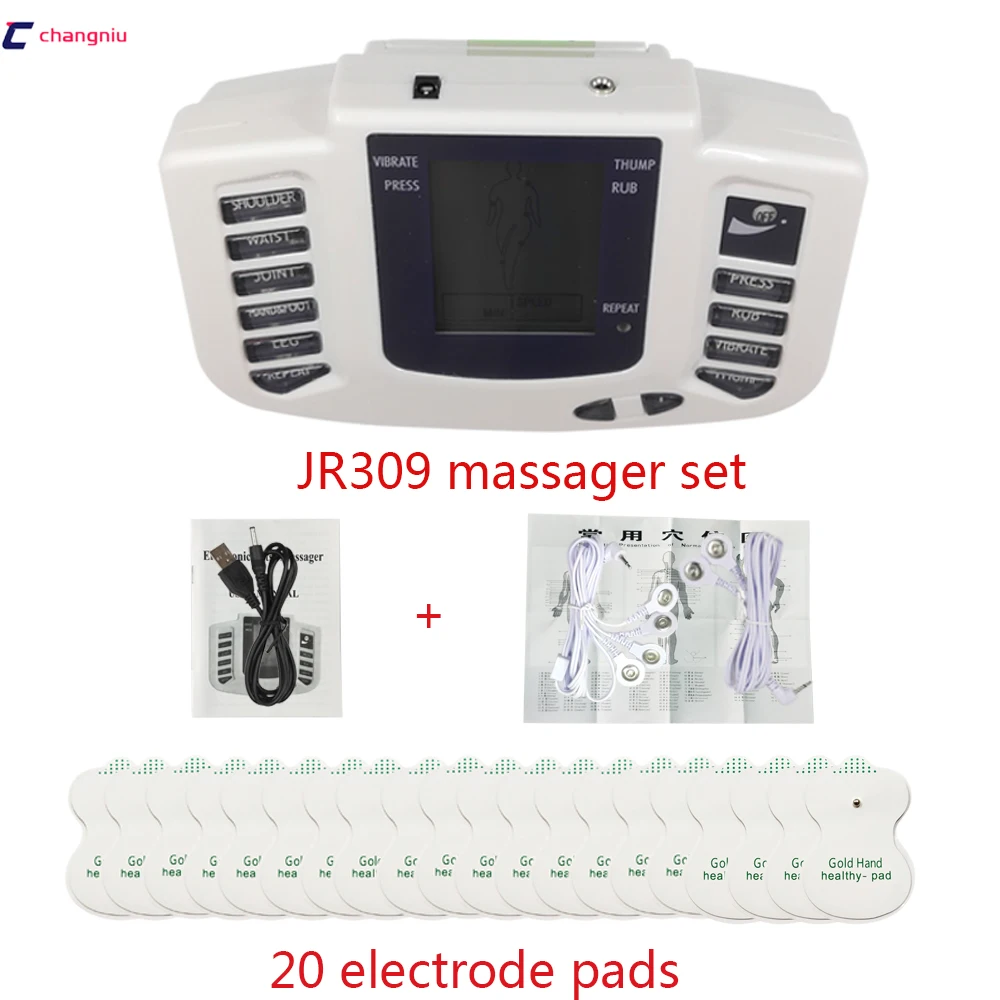 Здравоохранение! JR-309 Новый электрический стимулятор всего тела Расслабляющая мышечная терапия для похудения Массажер импульсные Десятки Акупунктура + 20 электродных подушечек + usb-кабель(Без тапочек и адаптера зарядного устройства, без розничной упаковки)