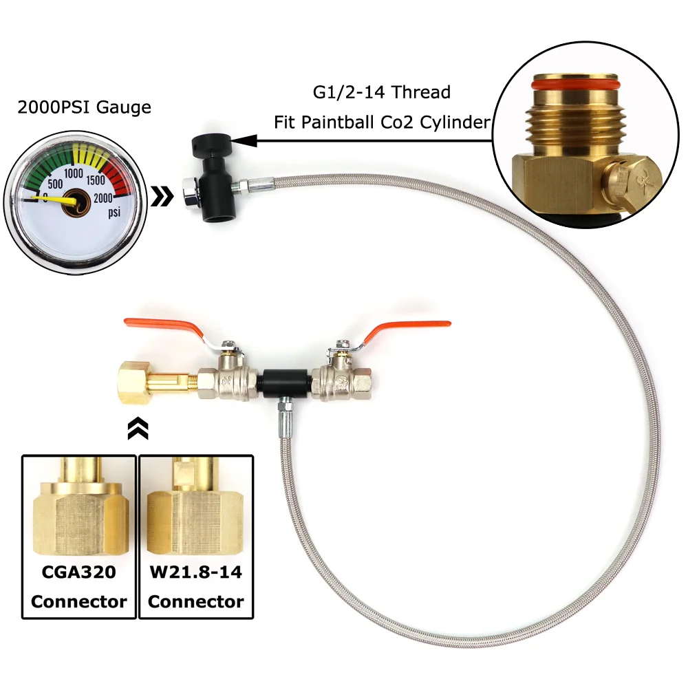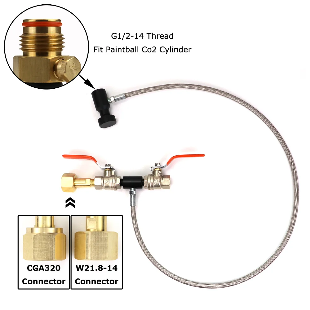 Новый CGA320 W21.8-14(DIN 477) CO2 адаптер для зарядки с 36 дюймовым шлангом для пейнтбола G12-цилиндровый резервуар