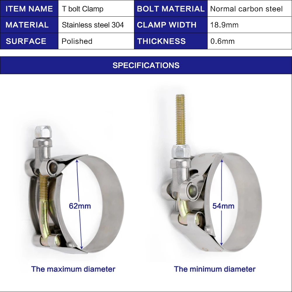 Материал: нержавеющая сталь SS304 с ЧПУВнутренний диаметр: 2 "(54-62)Цвет: серебристый.Температура Выдерживает оценку: от-65F до 500FНоминальное давление: 120-275 PSI Посылка включает в себя: