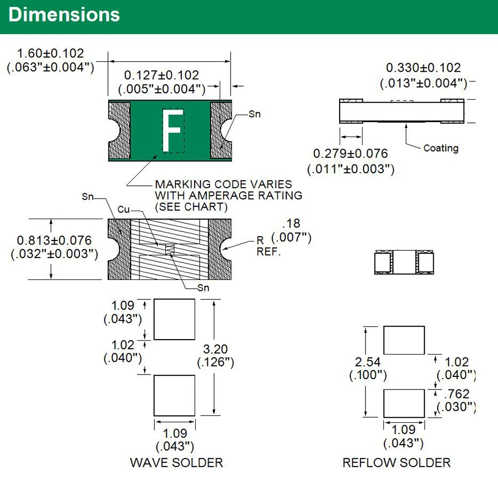 Совместимость с leadfree solders и высокотемпературными профилями Высокоэффективные материалы обеспечивают улучшенную производительность при повышенной температуре окружающей среды Отмечены на верхней поверхности с кодом, чтобы позволить amp определение рейтинга без тестирования Низкий профиль для чувствительных к высоте применений Плоская верхняя поверхность для операций с pickand-место Материал покрытия элемента устойчив к промышленным стандартным очистным работам Монтажная панель и электрические характеристики идентичны продуктам серии Littelfuse 431 и 434 Не содержит галогенов, не содержит свинца и соответствует RoHS