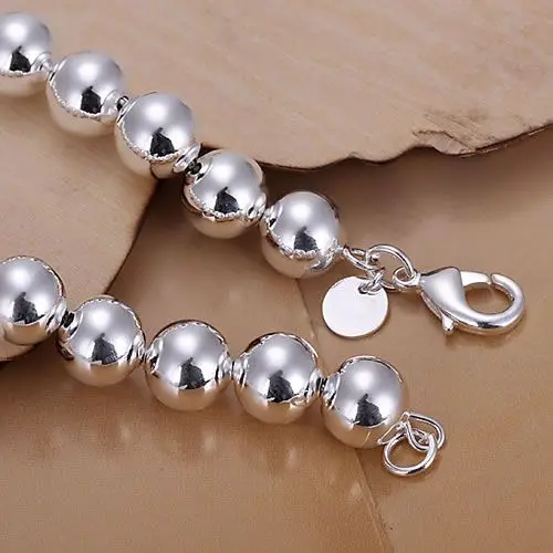 Свадебные подарки, изящные серебряные браслеты для женщин, очаровательные модные ювелирные изделия, 10 мм браслет с полыми бусинами, Axoajova H136-2