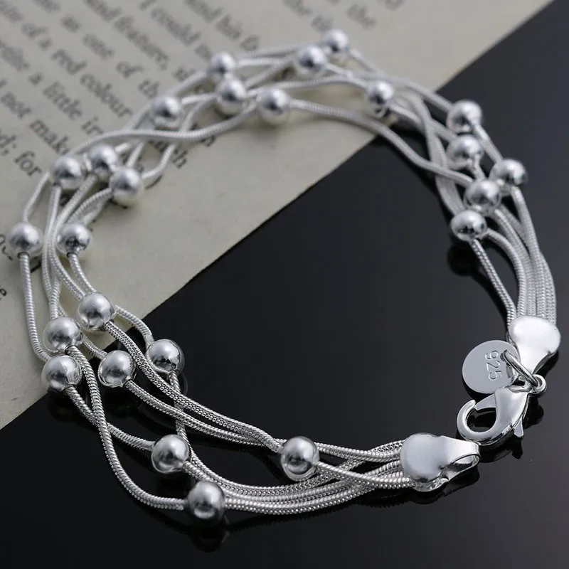Женский браслет из серебра пробы, с 5 блестящими шариками